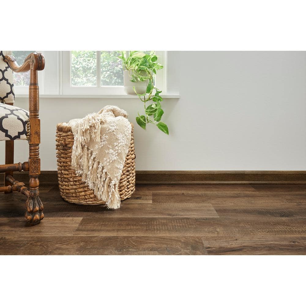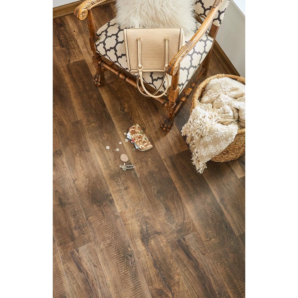 The Pergo Outlast+ Cocoa Walters Oak flooring introduces a tranquil earthy elegance to any room. Its rich dark brown tones echo the warm embrace of a rustic cabin retreat, adding depth and character. The meticulous cross-sawn texture not only captures the eye but also harmoniously complements various decor styles, from contemporary to vintage chic. By seamlessly merging aesthetics and function, this flooring is an indispensable choice for those seeking durability without sacrificing beauty.