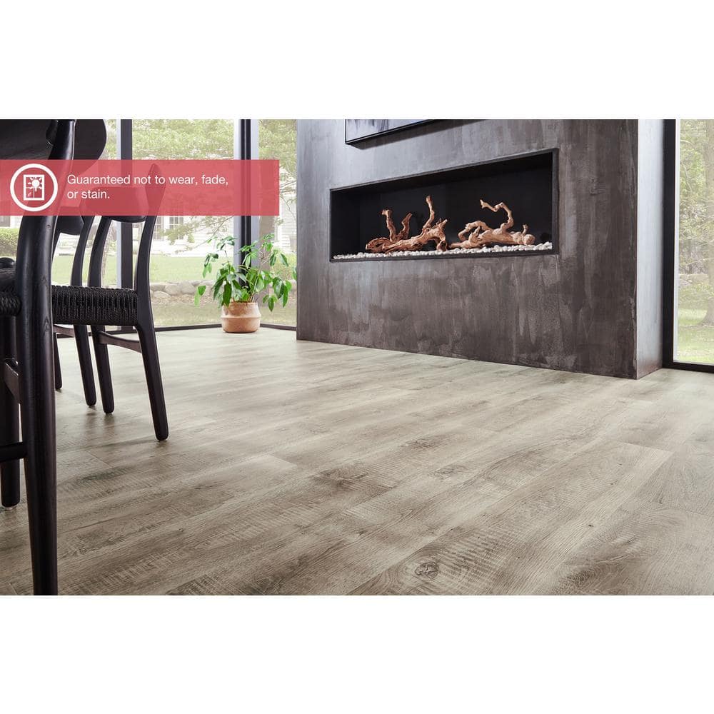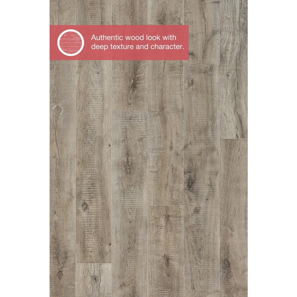 Transform your abode into a sanctuary with Pergo Outlast+ Mist Walters Oak. Its textured surface and medium gray tone evoke a serene and timeless atmosphere, perfect for those who desire a blend of rustic charm and sleek modernity. Style it with plush area rugs for that cozy yet luxurious feel in your living space. The robust design ensures it's an indispensable choice for aesthetic enhancement and enduring resilience.