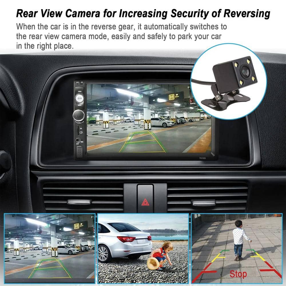 Rear View Camera Compatibility: Automatically activates camera view when reversing for safer parking.