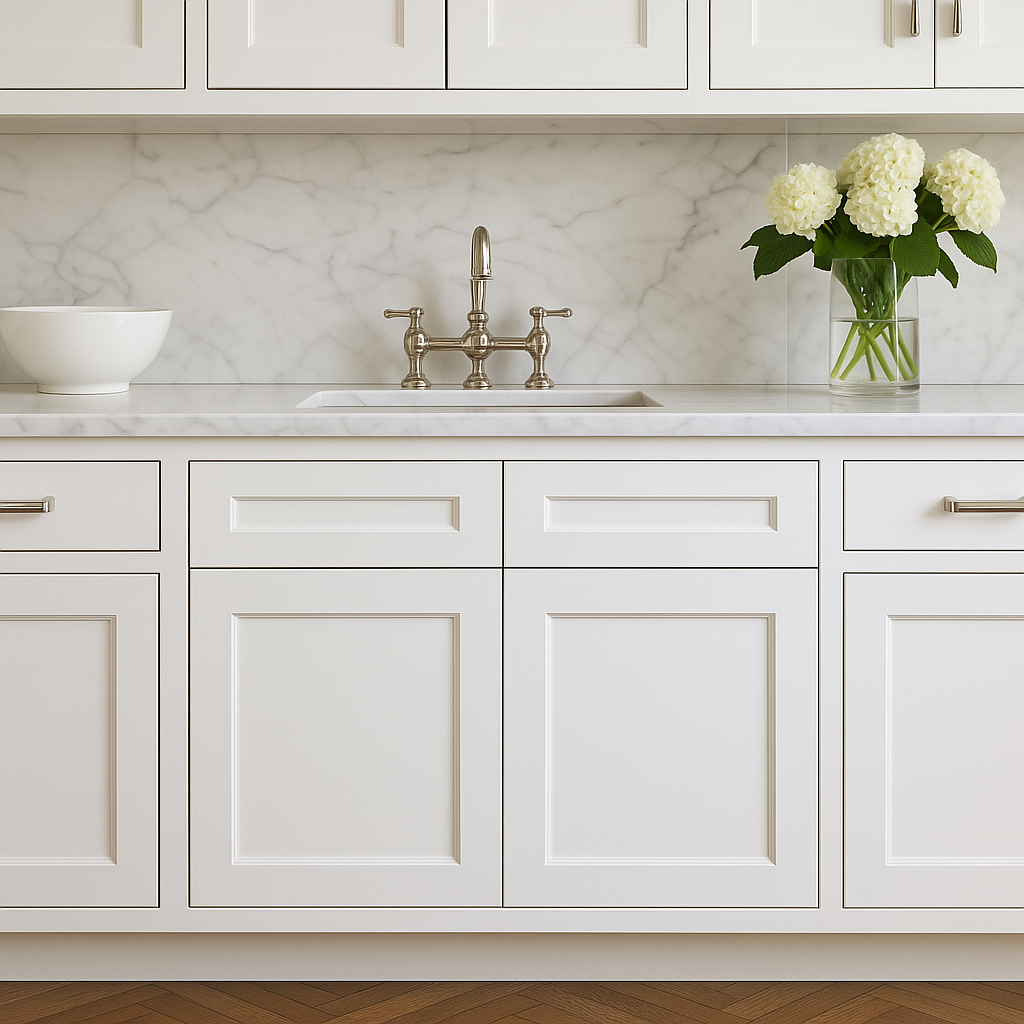 • Elegant Design: Shaker style with painted white finish.