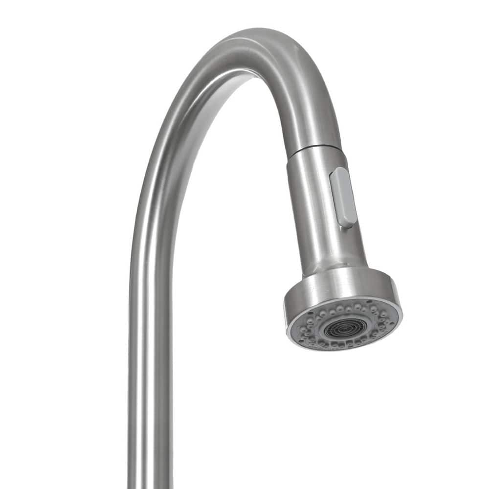 A: Yes, the stainless steel pull-down faucet includes a garden hose adapter.