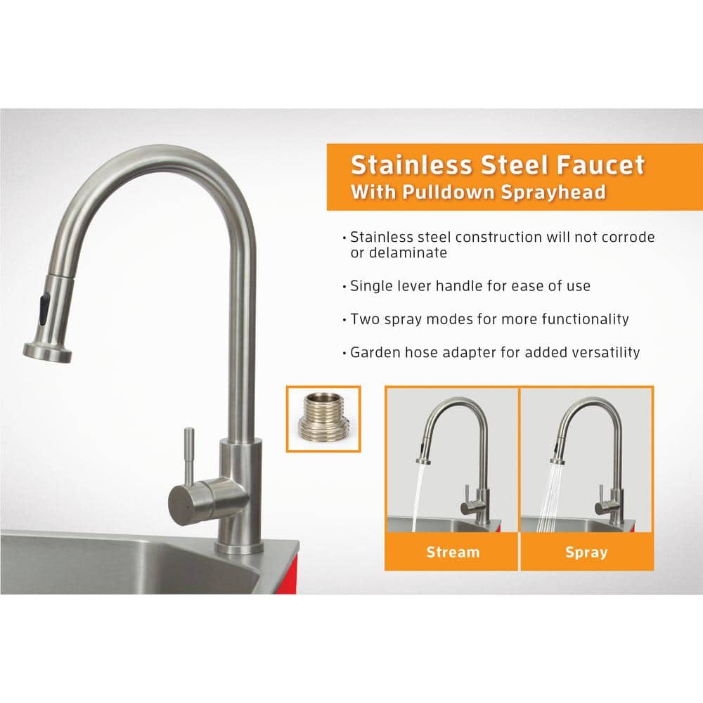 Convenient Design: Includes a pull-down faucet with garden hose adapter for versatile usage.