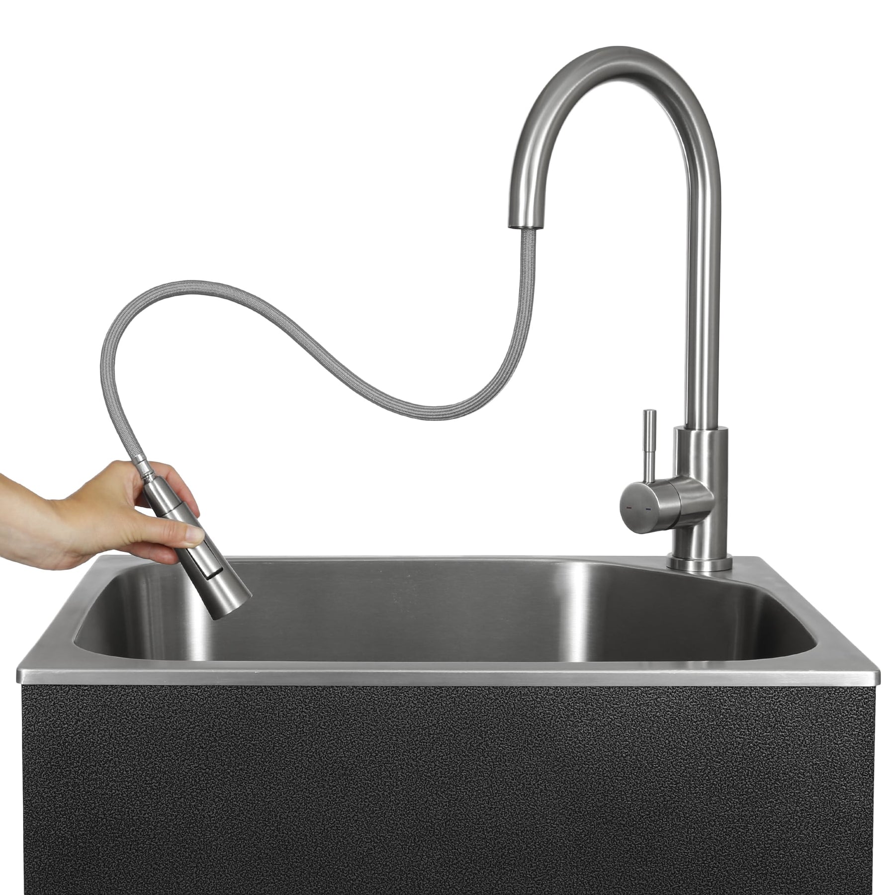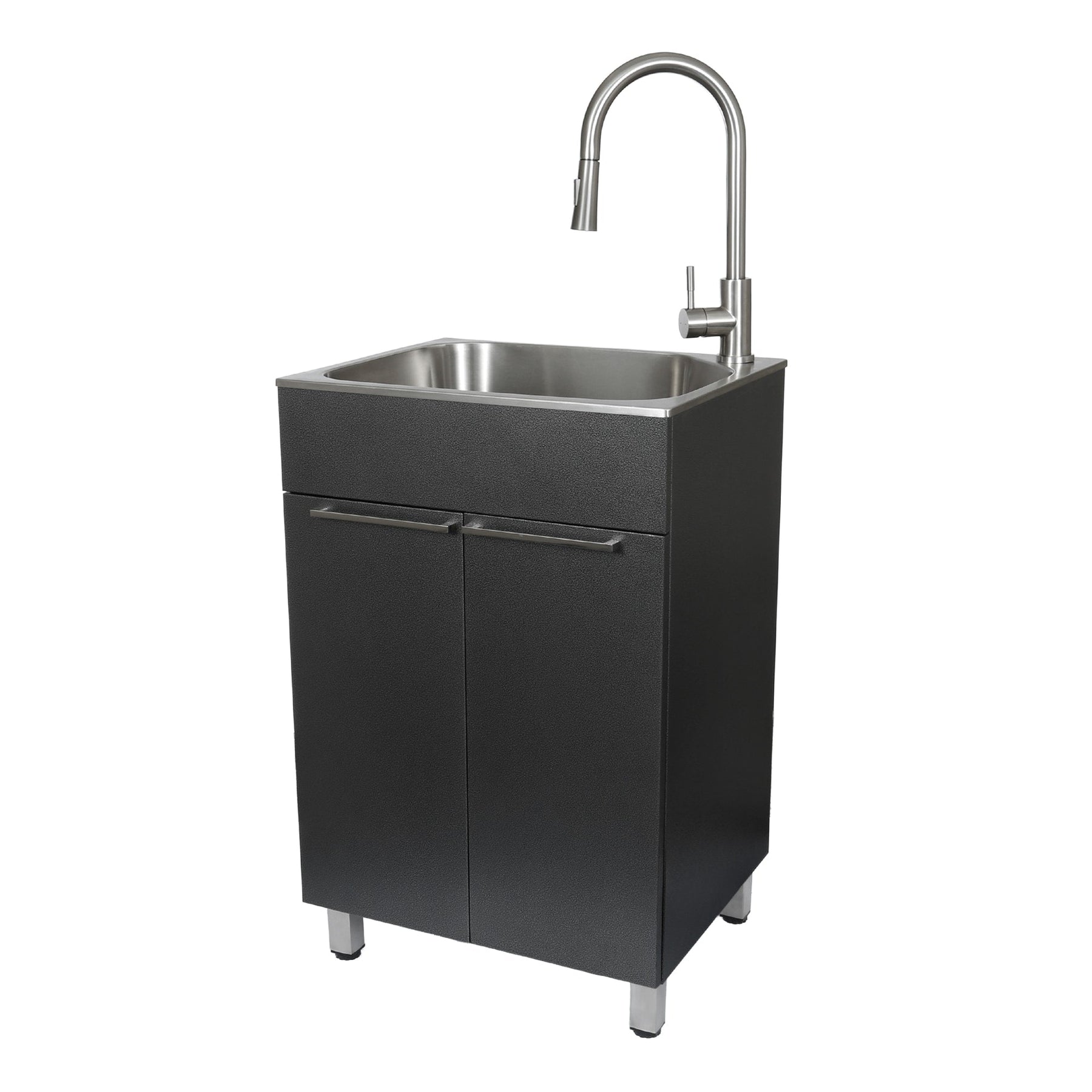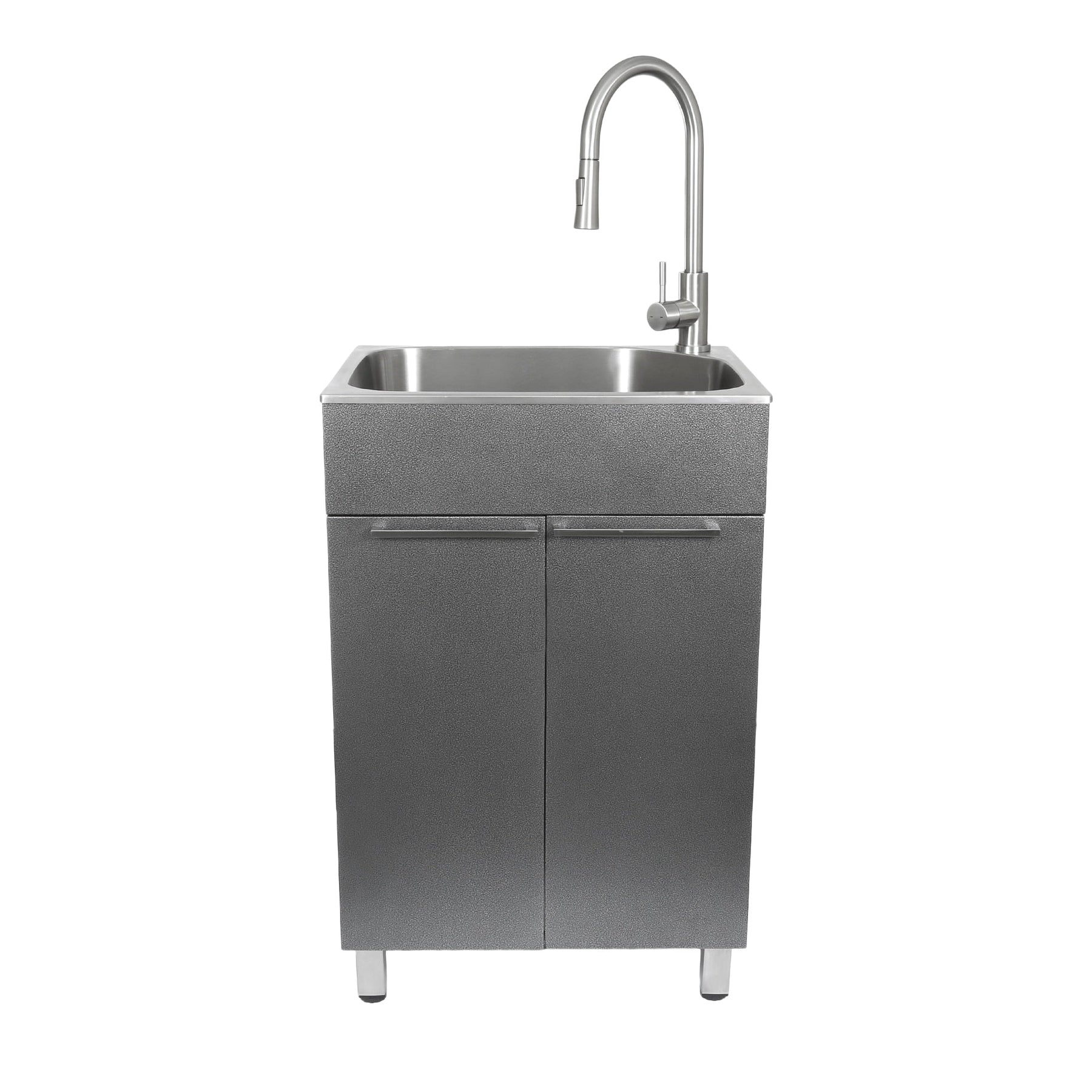 All-in-One Design: Includes storage cabinet and utility sink with pull-down faucet for versatile use.