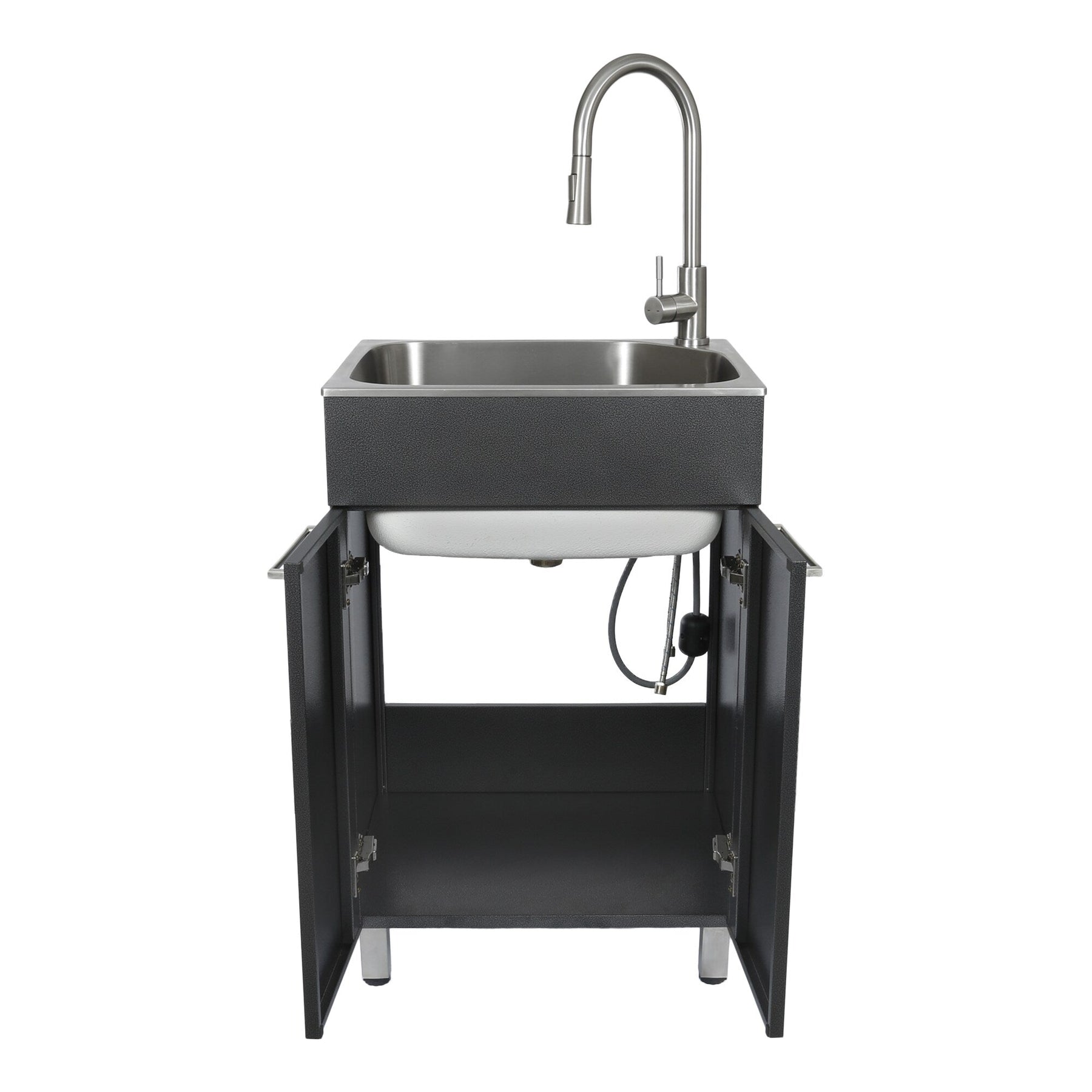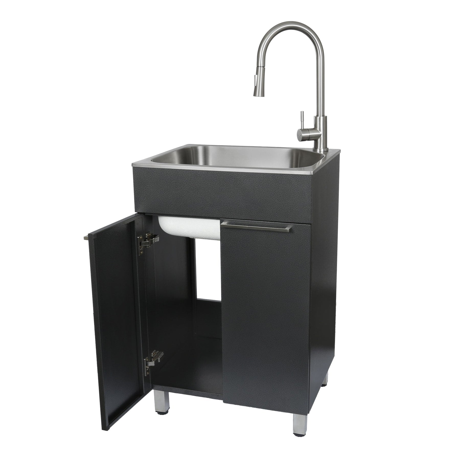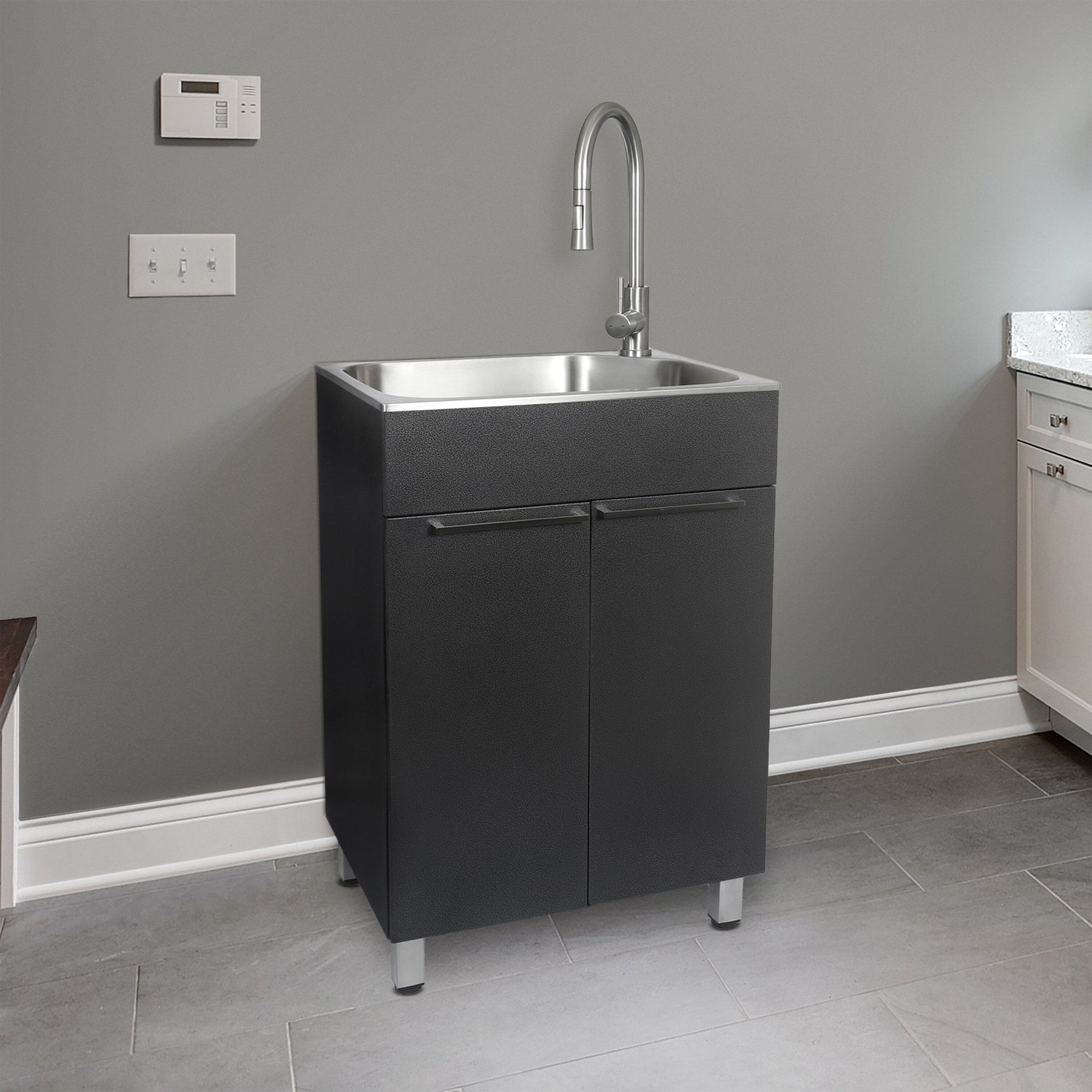All-in-One Design: Includes storage cabinet and utility sink with pull-down faucet for versatile use.