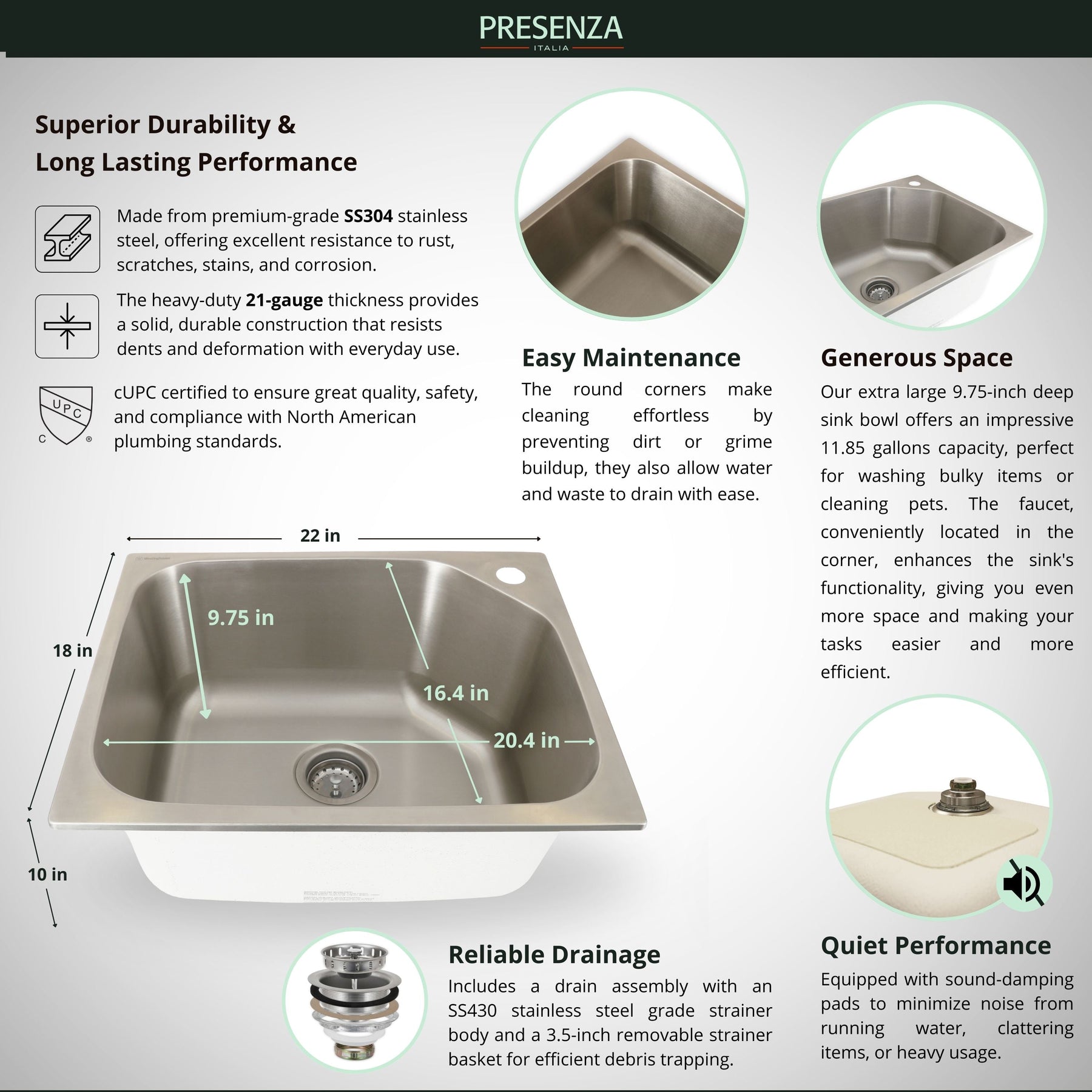 Transform your utility area with the Presenza Drop-In Utility Tub, the perfect blend of style and practicality.