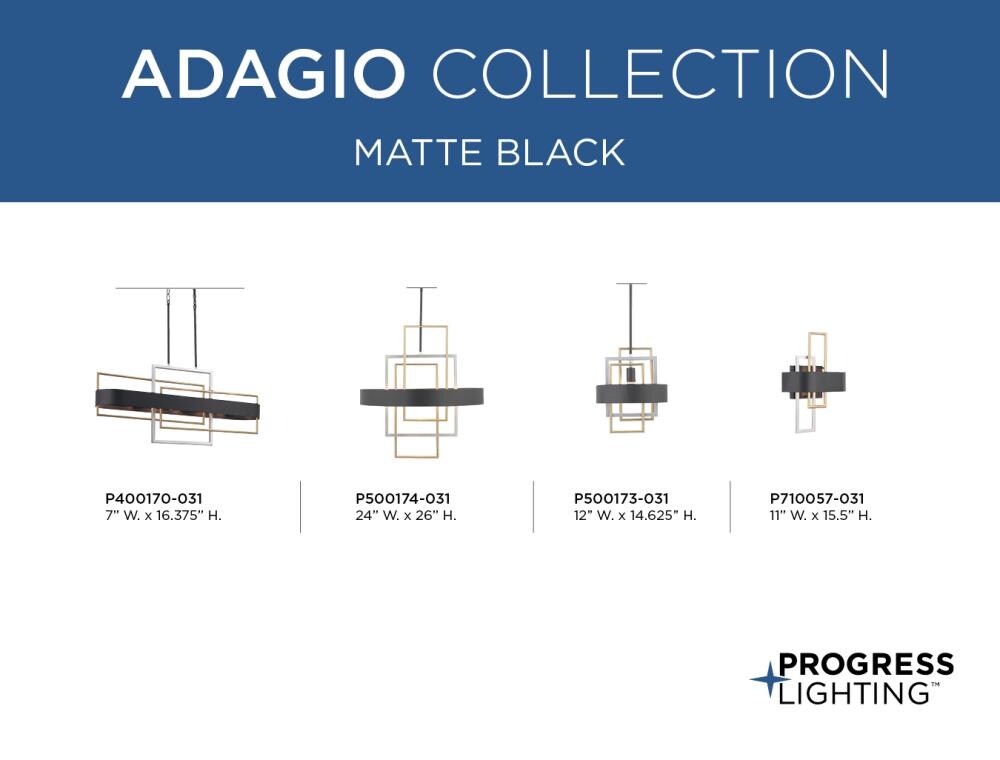 Elevate your spaces with the Adagio 6-Light Matte Black Chandelier, where sleek modern design meets versatile functionality. Its striking geometric form and mixed metal elements create an elegant centerpiece, perfectly suited for modern and contemporary settings.