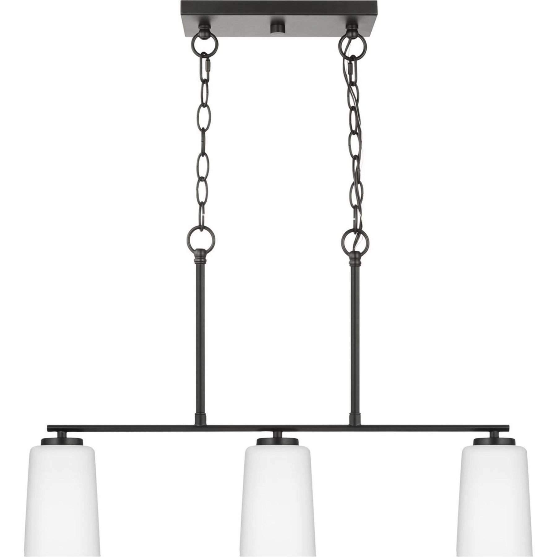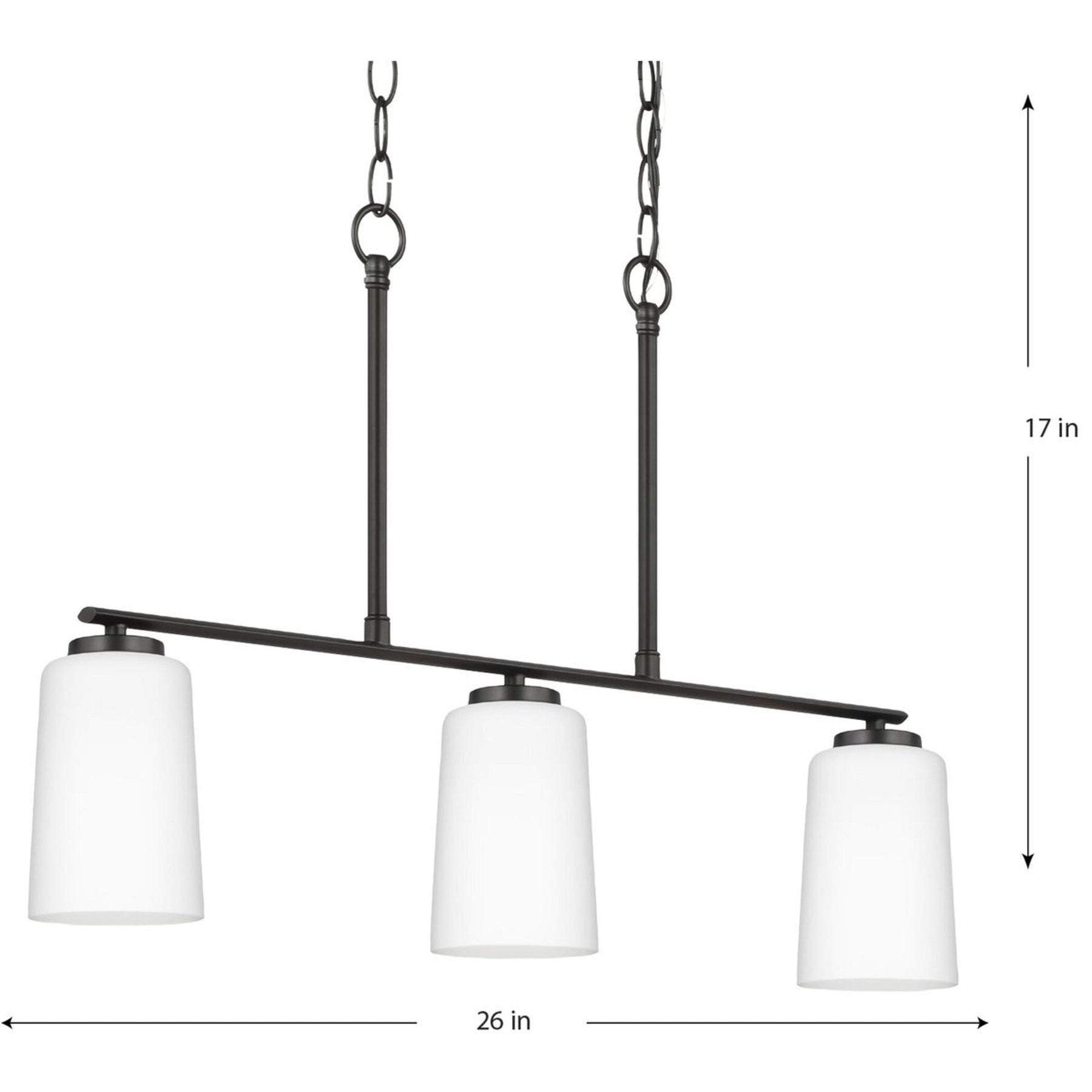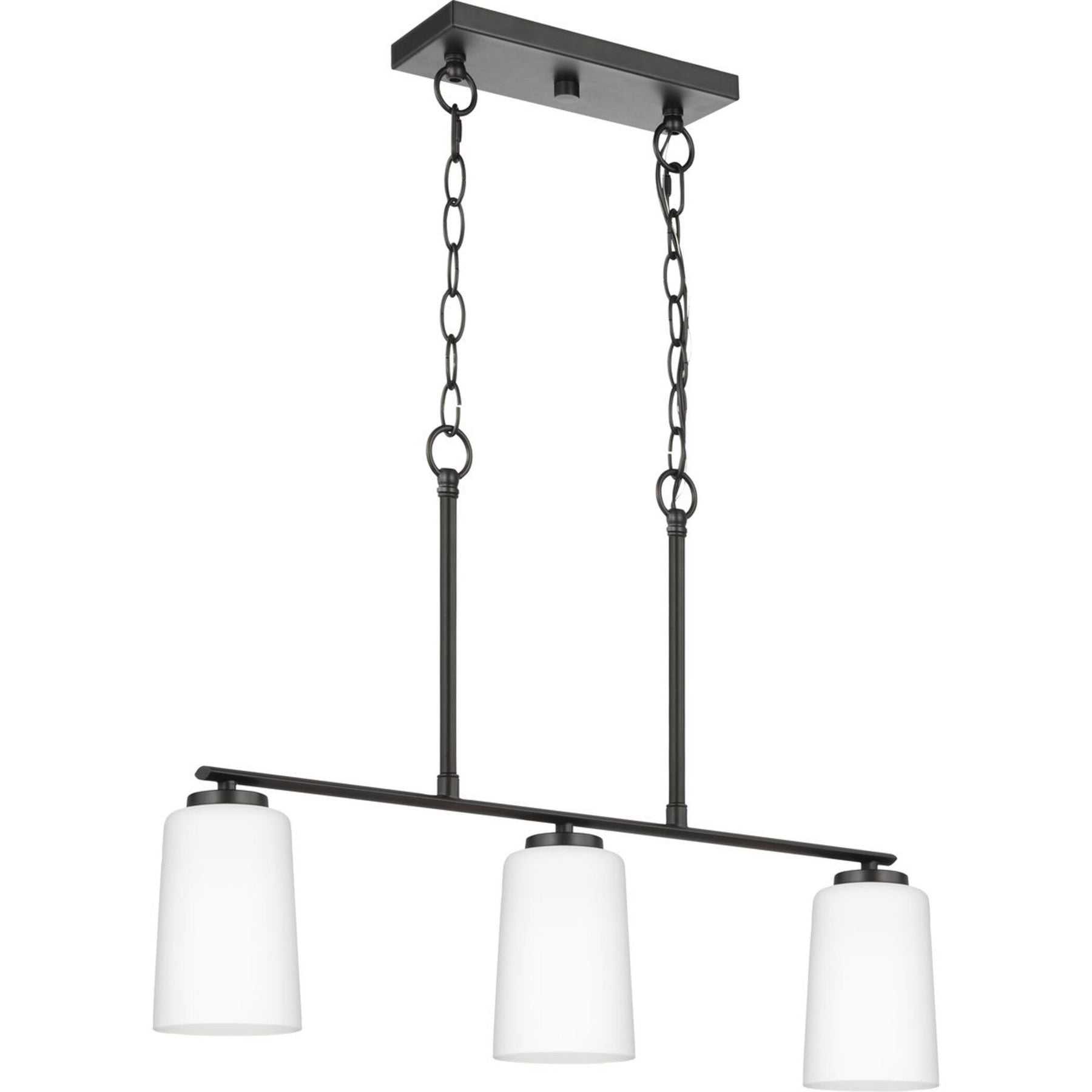 Elevate your home's aesthetic with the Progress Lighting Adley 3-Light Matte Black Chandelier. This fixture merges modern and traditional design elements with its etched white glass shades and matte black finish, perfect for enhancing any transitional or contemporary setting. Ideal for dining rooms, kitchens, or anywhere seeking stylish elegance.