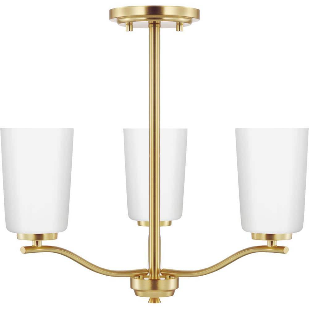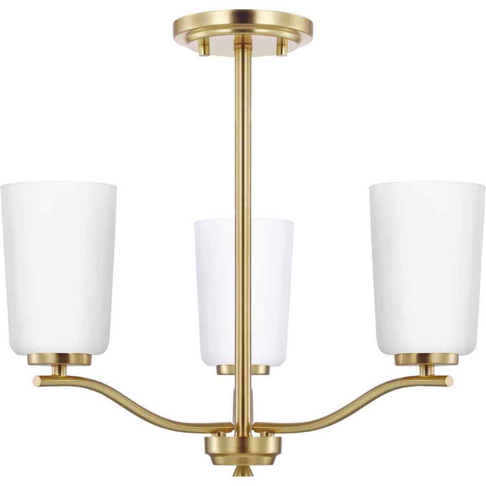 Sophisticated Appeal: Satin brass finish with etched white glass reduces glare while providing warm radiance.