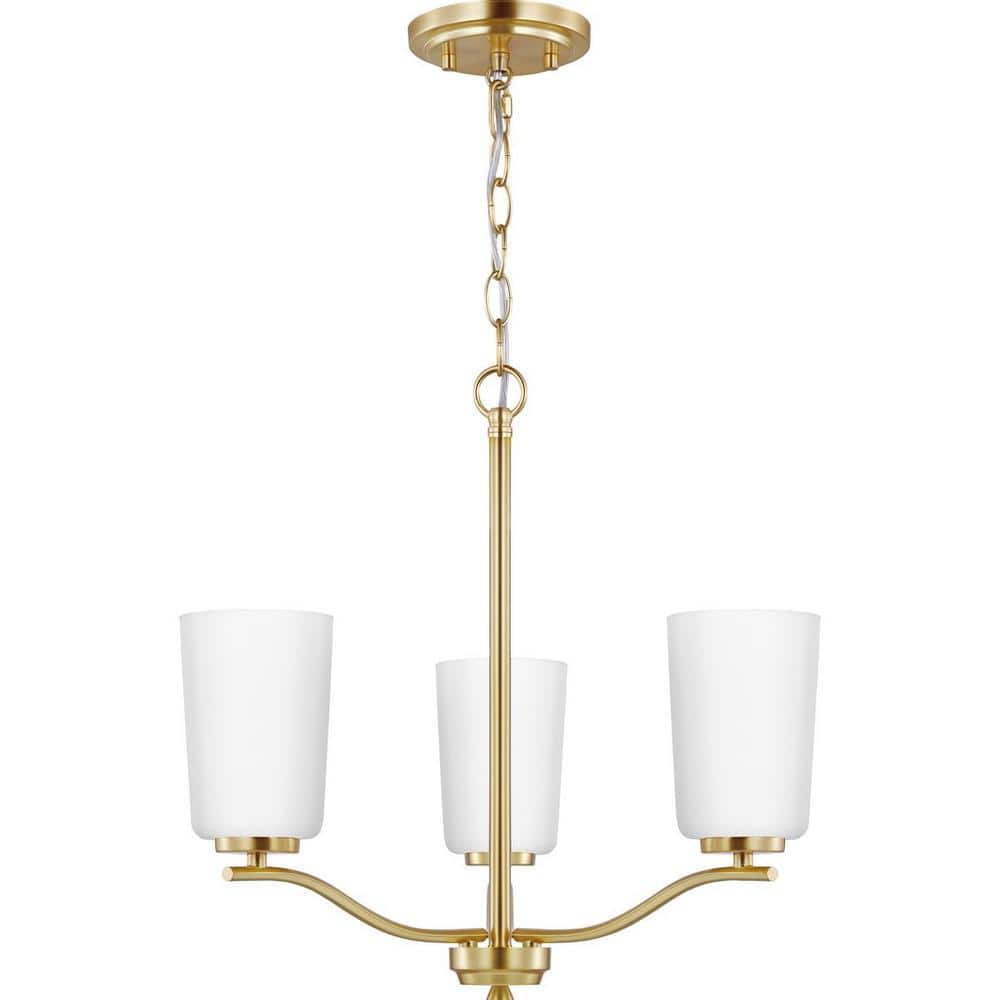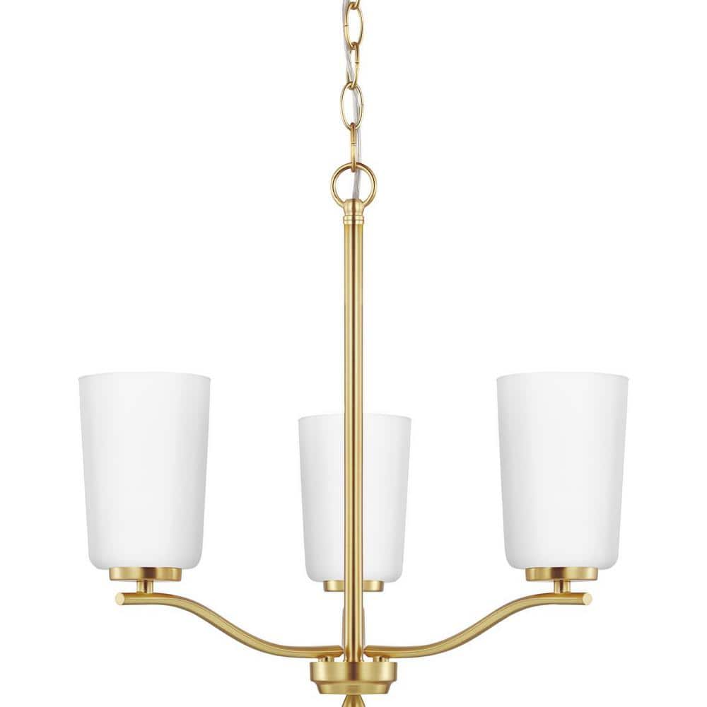 Illuminate your space with the Adley 3-Light Chandelier by Progress Lighting. Featuring a sophisticated satin brass finish complemented by etched white glass, this fixture effortlessly bridges modern elegance with traditional charm. Ideal for kitchens and dining areas, its versatile design can be customized to suit a variety of ceiling heights.