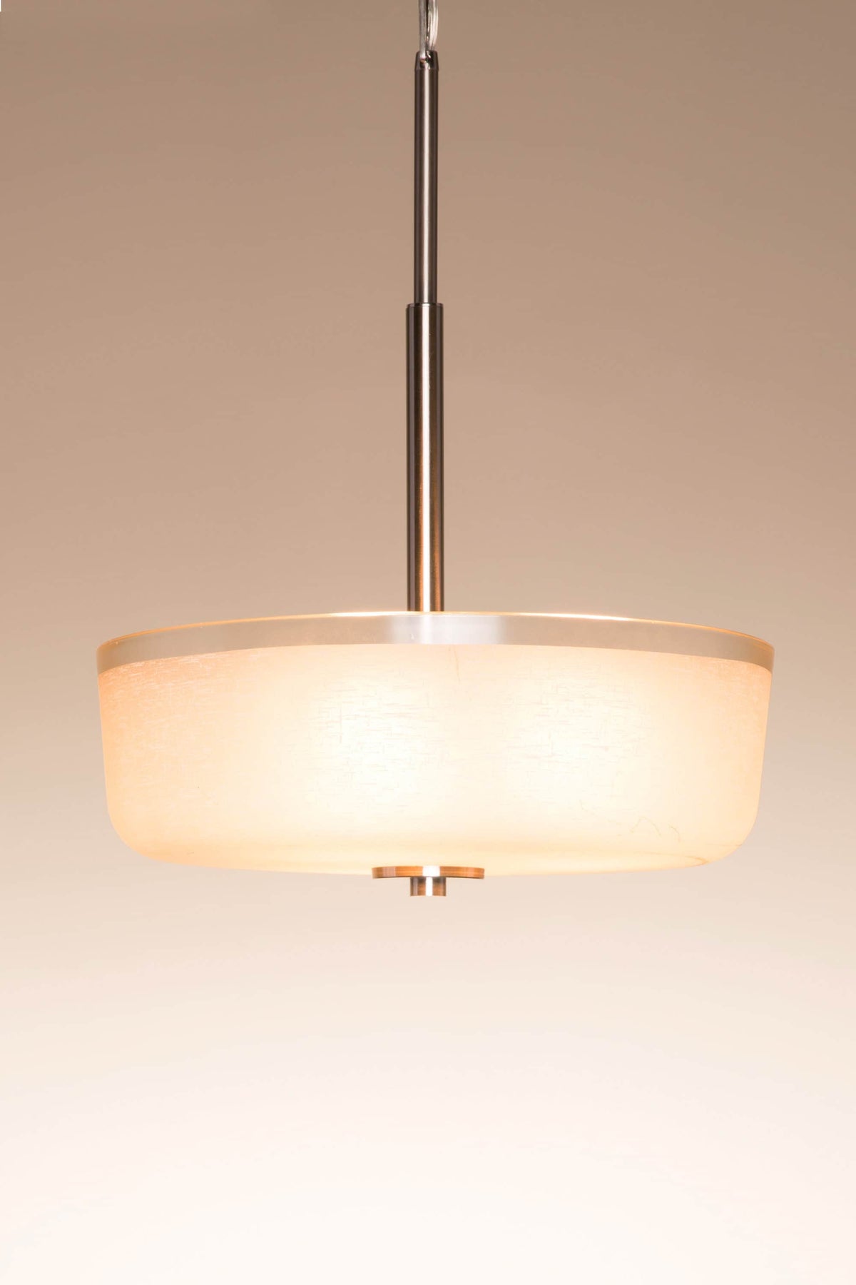 • Design: White linen glass shades add a soft, inviting glow to any room.