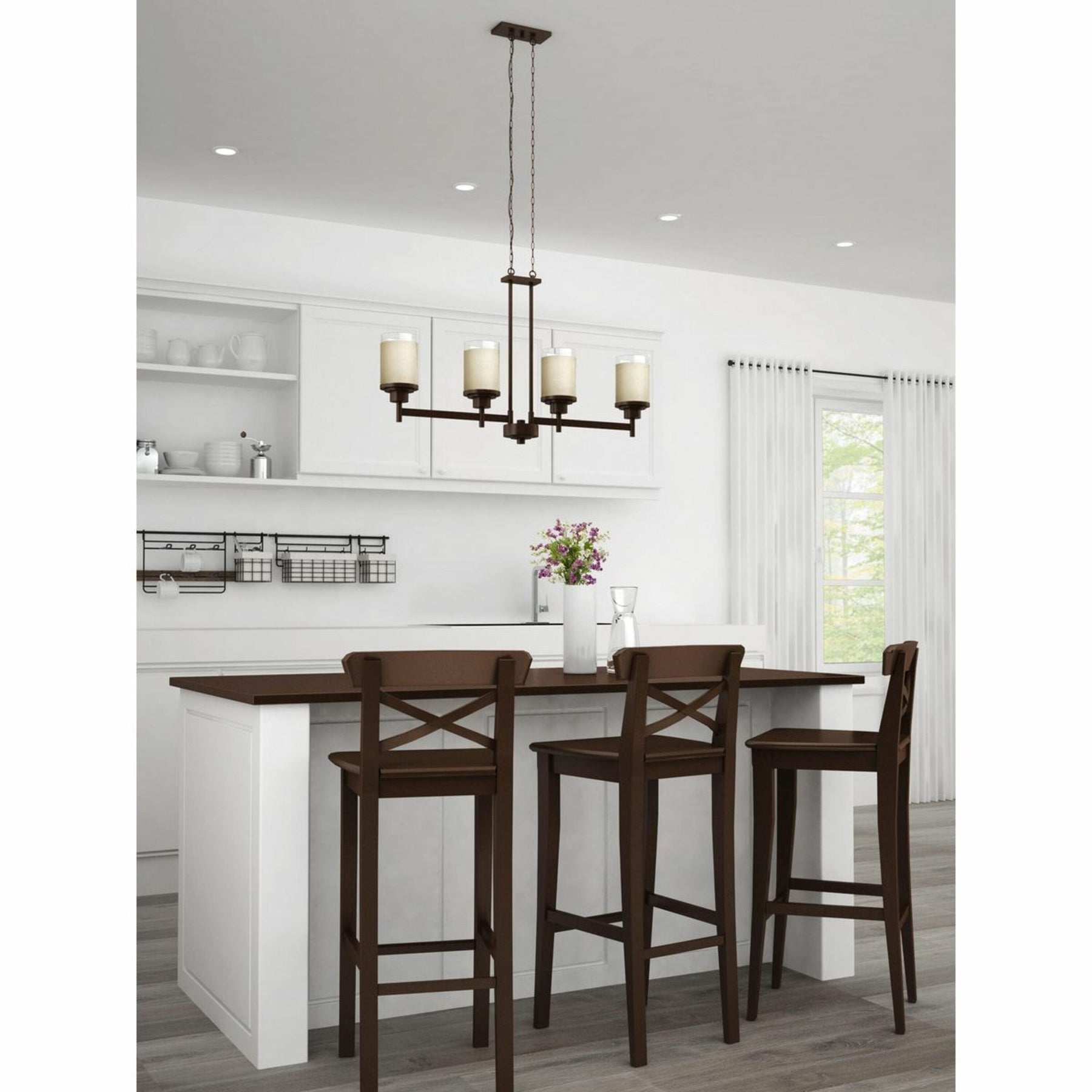 This exquisite Alexa Chandelier captivates with its linear form and historic charm embodying a beautiful blend of contemporary and vintage styles. The etched umber linen glass shades exude a warm, inviting glow that transforms any dining area or foyer into a sophisticated sanctuary. Consider suspending it over a long dining table for an elongated illumination that anchors your stylish gatherings. The adjustable chain and classic bronze finish make it both versatile and distinctly luxurious, elevating everyday living to an extraordinary experience.