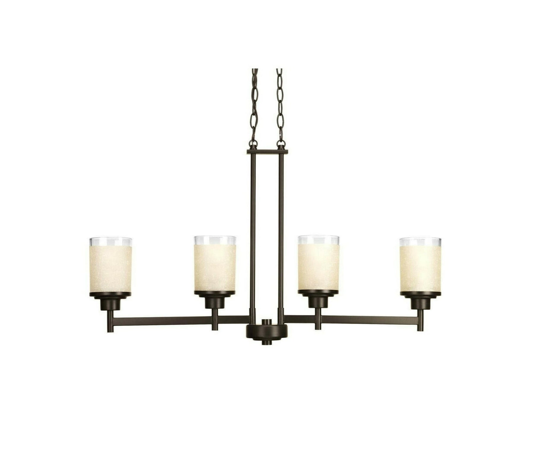 Illuminate your space with the sophisticated Alexa 4-Light Antique Bronze Chandelier. Designed by Progress Lighting, this chandelier blends sleek transitional style with practical features, showcasing etched umber linen glass shades with clear edges. Perfect for enhancing dining rooms and kitchens, it offers adjustable hanging heights and dimmable lighting to create the right ambiance for any occasion.