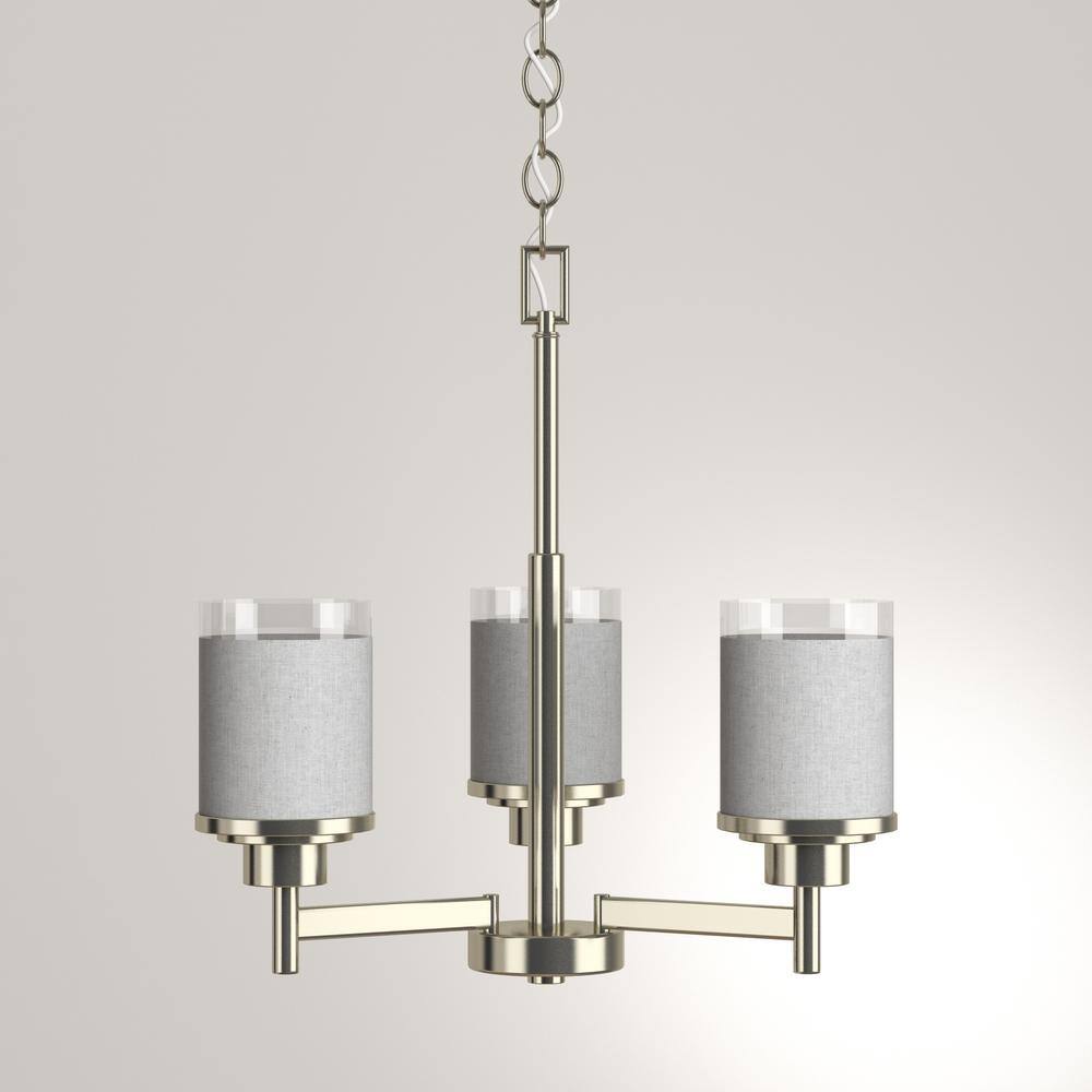 The Alexa Collection 3-Light Chandelier by Progress Lighting transforms any room into a wondrous oasis of elegance and charm. Its brushed nickel silhouette paired with etched linen glass introduces a captivating play of light and texture. Style it over your dining table or as a dramatic entrance piece in a foyer to accentuate your décor with a touch of modern sophistication. Truly, this chandelier is more than lighting; it's a statement piece for a luxurious lifestyle.