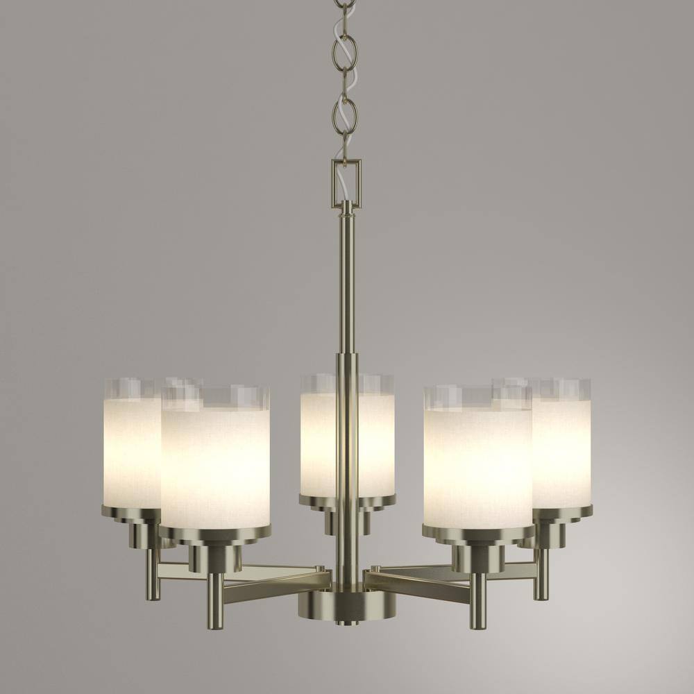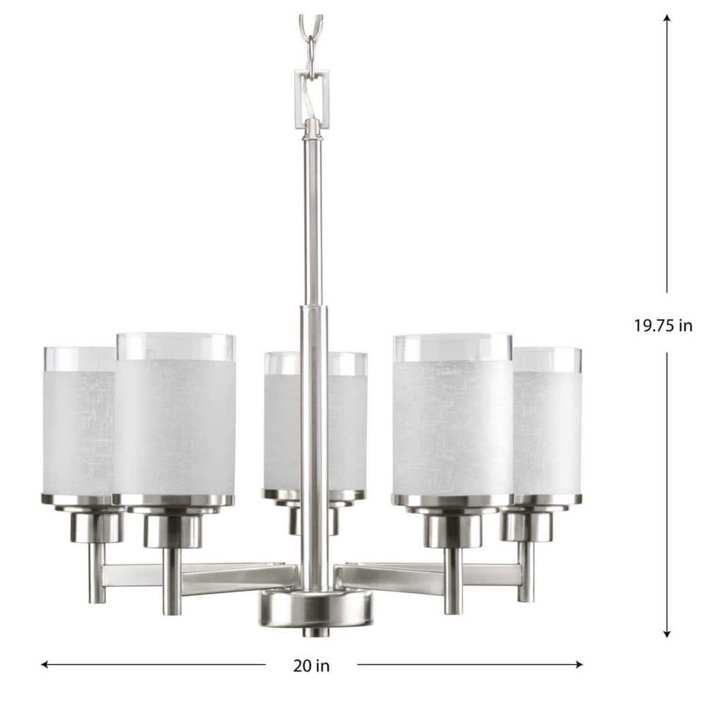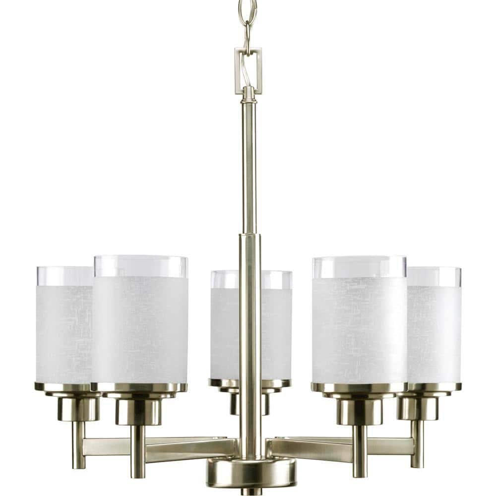 Progress Lighting Alexa Collection 5-Light Brushed Nickel Etched Linen With Clear Edge Glass Modern Chandelier Light