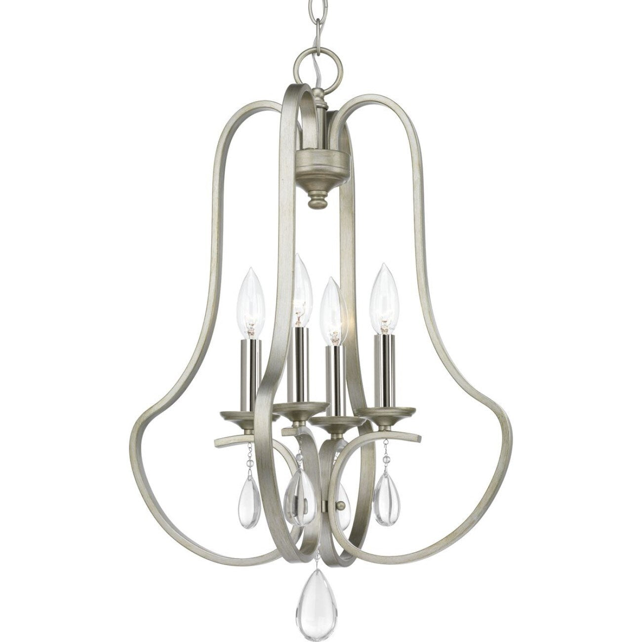 Illuminate your home with the captivating Anjoux 4-Light Hanging Pendant from Progress Lighting. This medium-sized, geometric fixture features a striking Silver Ridge finish paired with elegant crystal details, perfect for bringing a touch of sophistication to any transitional space. With its versatile design, this pendant complements styles ranging from bohemian to rustic farmhouse, offering adaptable elegance for any room.