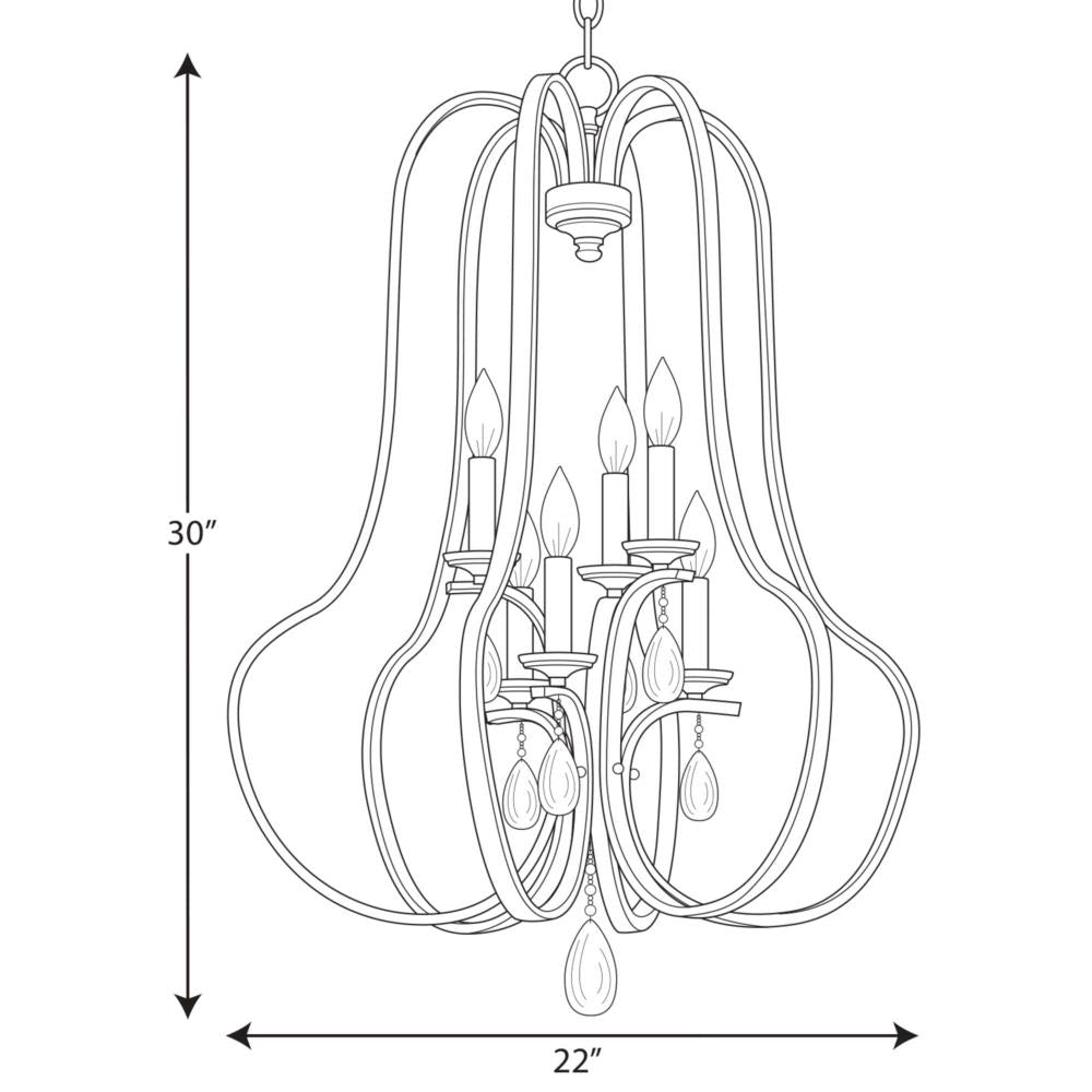 A: This light fixture requires six candelabra base (E-12) bulbs, with a maximum wattage of 60W each. LED, CFL, or incandescent bulbs are suitable options.