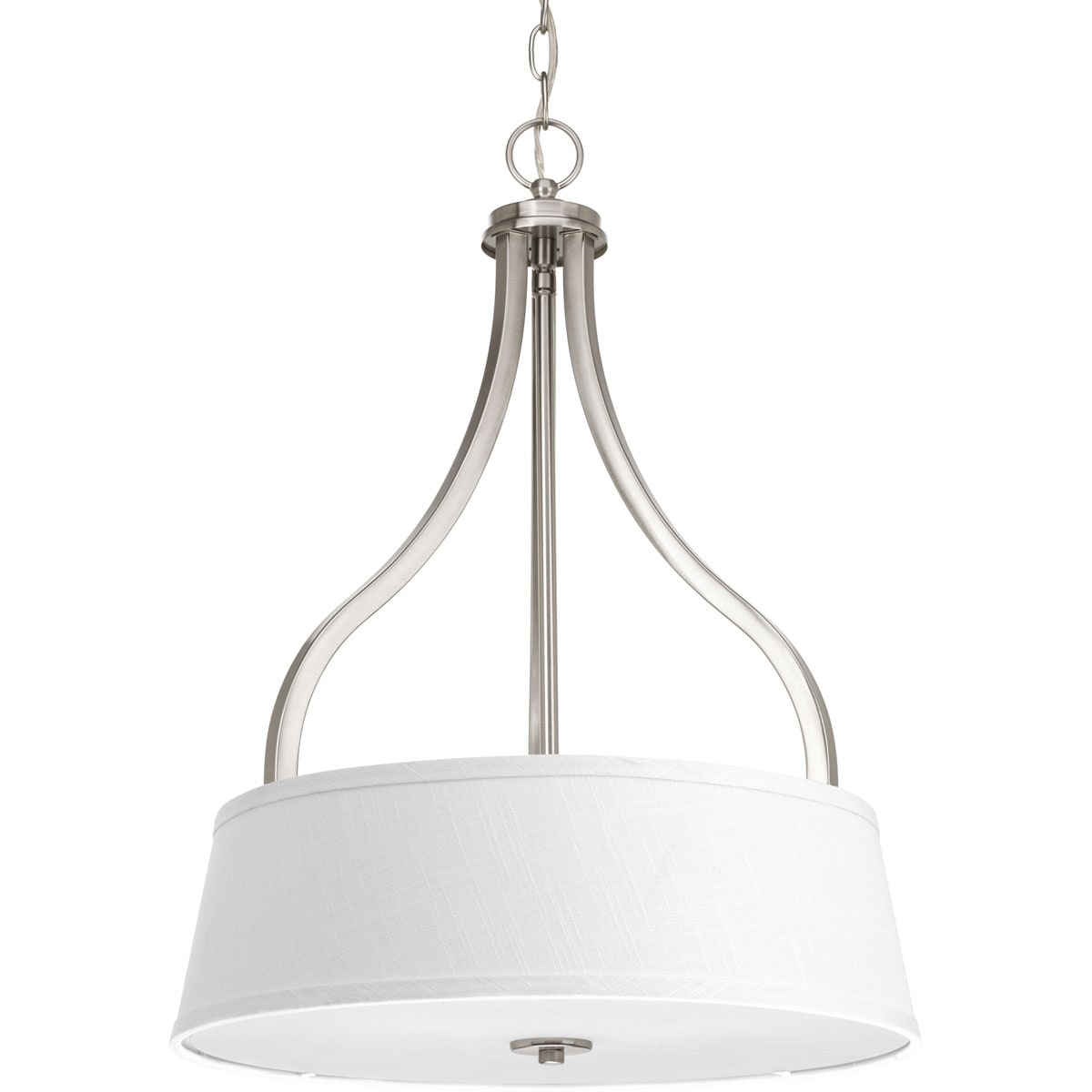 Elevate your home's ambiance with the Arden 3-Light Brushed Nickel Pendant Light by Progress Lighting. This exquisite fixture combines a transitional style with modern aesthetics, featuring a chic drum design accented by a summer linen shade and a brushed nickel finish. Perfect for various indoor spaces, it offers versatile beauty and superior illumination.