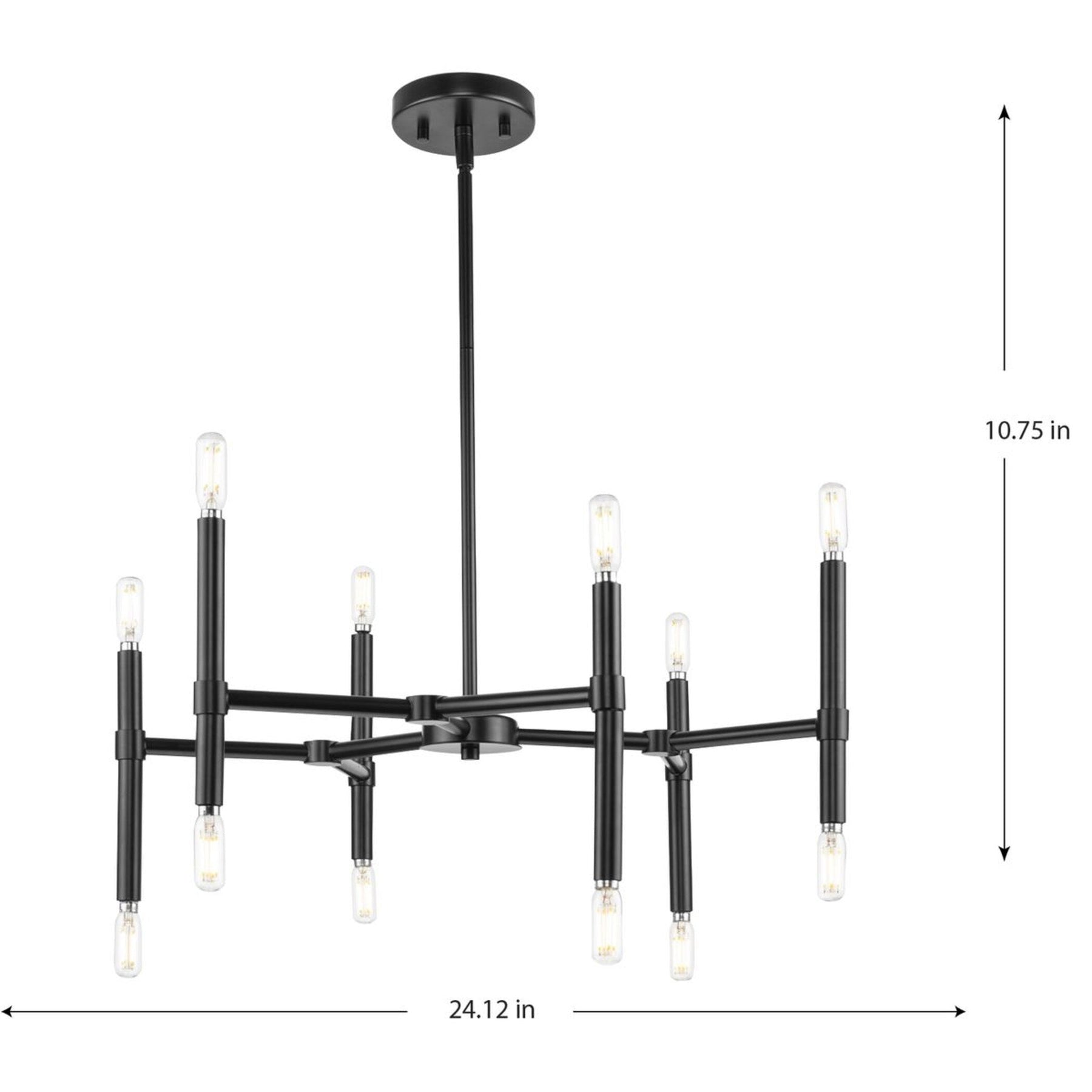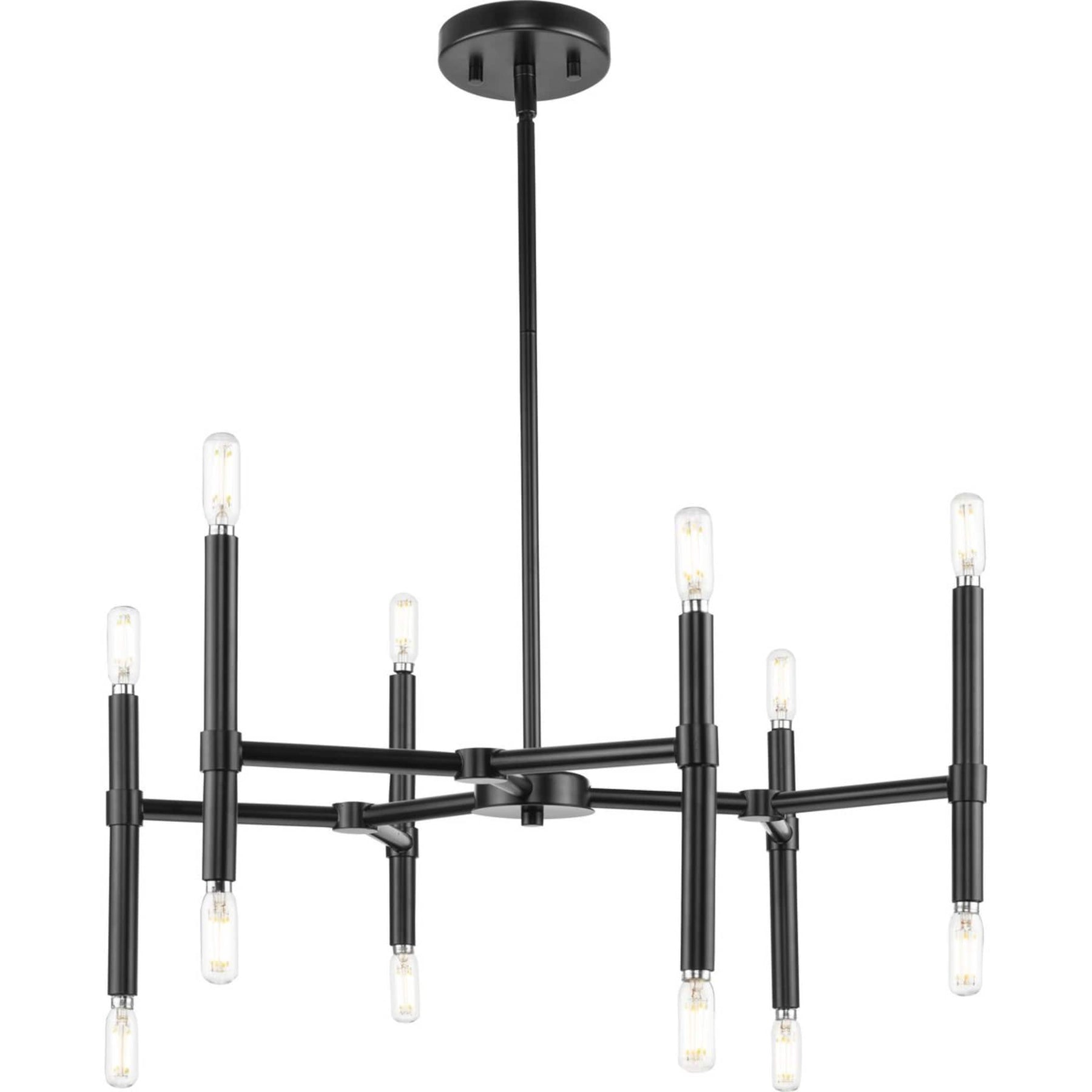 Elevate your space with the Arya 12-Light Matte Black Chandelier, a stunning piece from Progress Lighting that combines modern elegance with architectural flair. This striking chandelier features a sleek, matte black finish and staggered arms that create an enchanting visual rhythm, perfect for enhancing the ambiance of dining rooms, bedrooms, and living rooms.