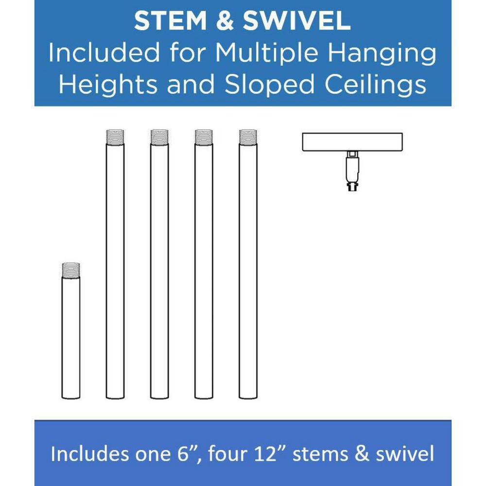 • Adjustable Hanging: Includes multiple stems and swivel capability for various ceiling heights and angles.