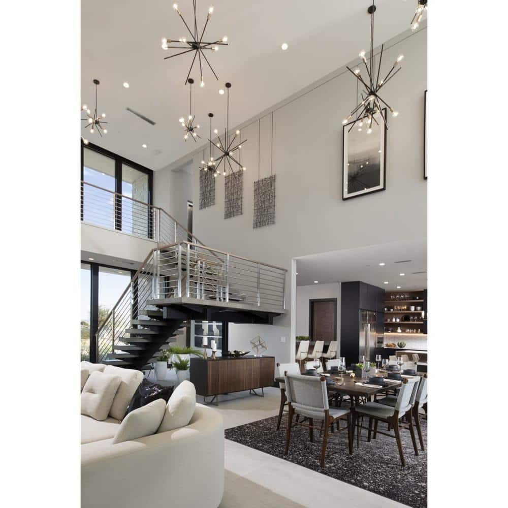 A: The chandelier is ideal for spaces such as dining rooms, foyers, and great rooms, especially those with mid-century modern, bohemian, or industrial decor.