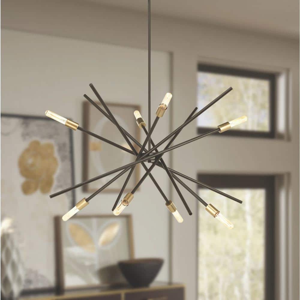Progress Lighting Astra Collection 42-3/8 in. 8-Light Mid-Century Modern Antique Bronze Mid-Century Modern Chandelier Light