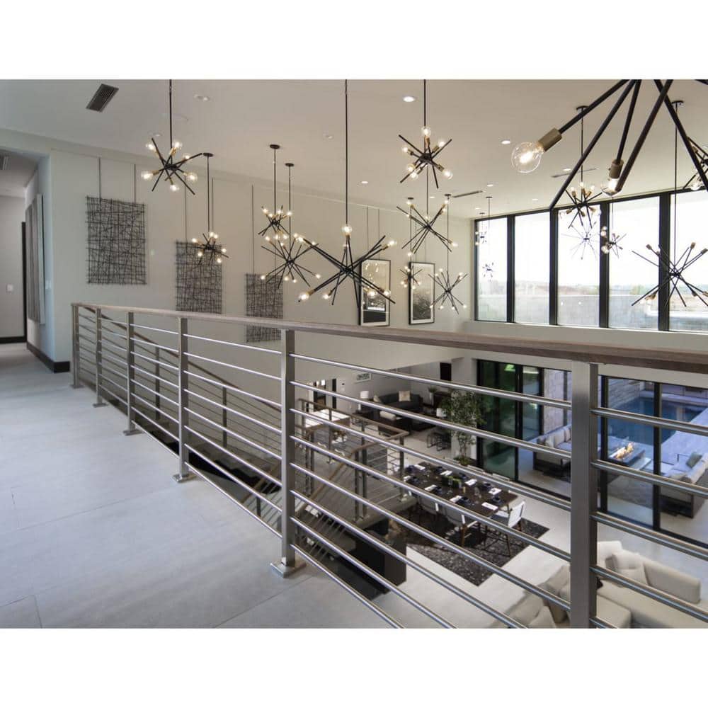 • Design: Sputnik-inspired with antique bronze spikes creating a celestial star-like fixture.