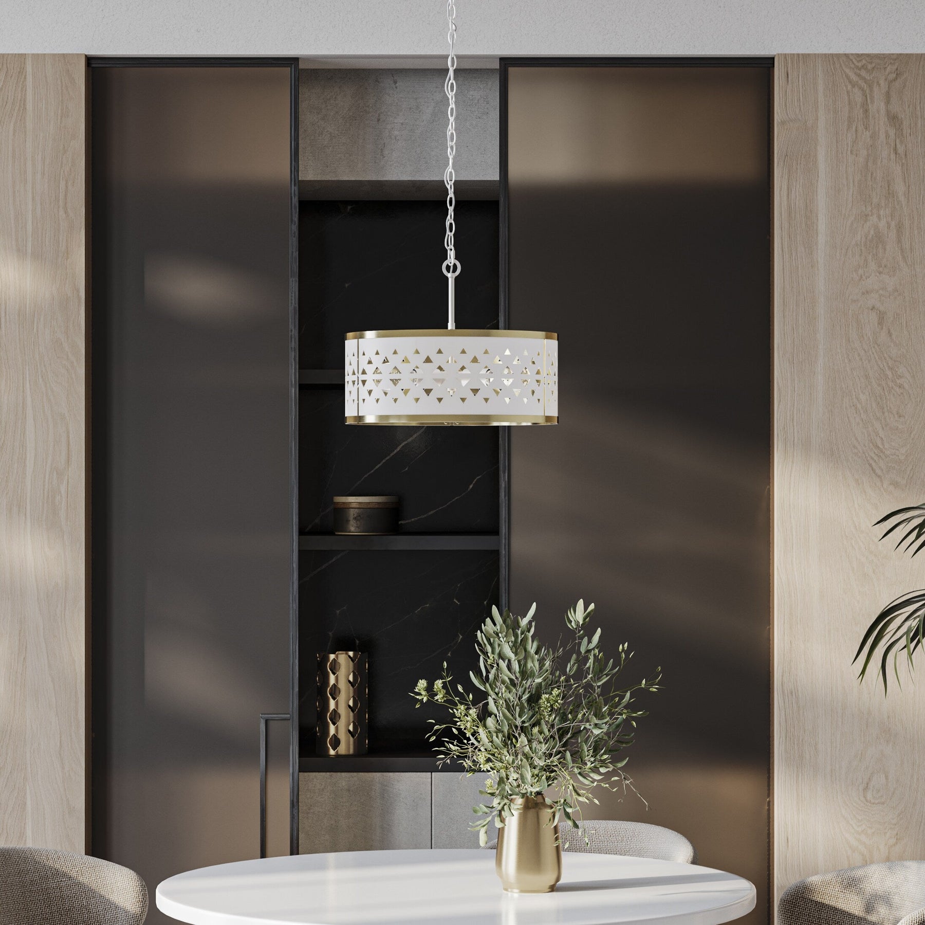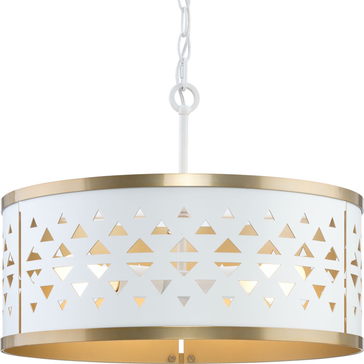 Illuminate your home with the elegance of the Avec 3-Light Pendant Light by Progress Lighting. This striking piece features a modern champagne bronze finish paired with a unique white metal drum shade that casts a captivating glow. Perfect for adding contemporary flair to kitchens, living rooms, or dining spaces.