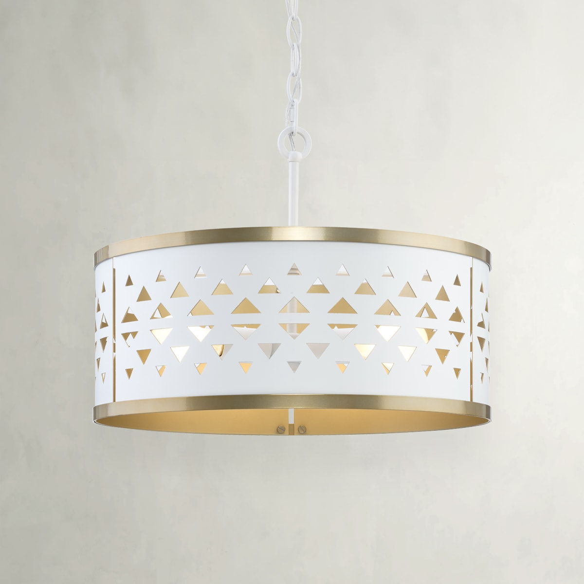• Alluring Glow: The white metal shade creates an enchanting patterned light effect.