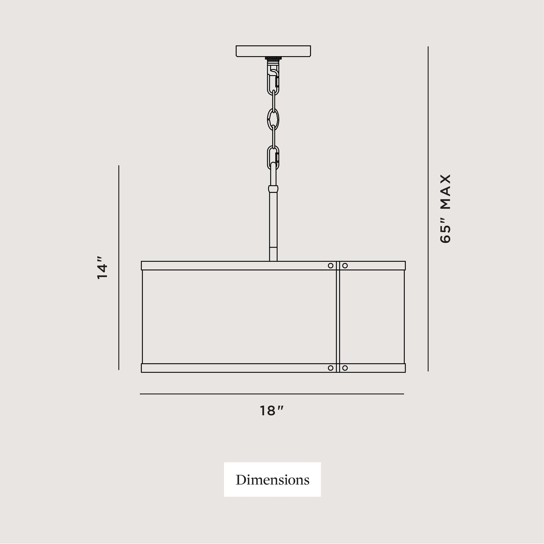 A: The pendant includes a 48-inch adjustable chain which allows you to customize the hanging height from a minimum of 17 inches to a maximum of 65 inches.