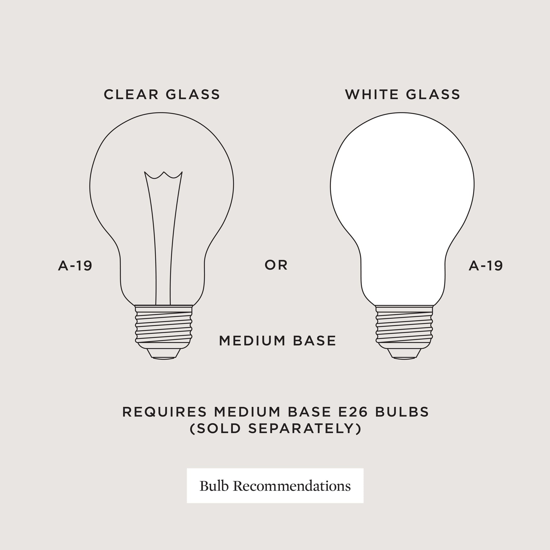 A: The Avec pendant light uses three 60-watt maximum A19 bulbs or LED equivalent bulbs which are sold separately. It is compatible with medium base (E-26) bulbs.