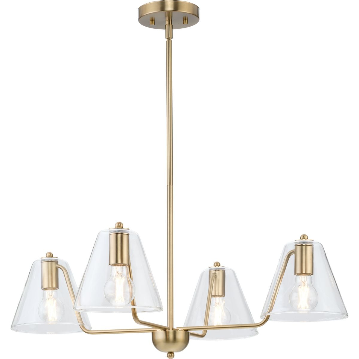 Elevate your home with the Avec 4-Light Brushed Gold Chandelier by Progress Lighting. This stunning fixture combines modern minimalism with a touch of luxury, featuring clear glass shades and a brushed gold finish. Perfect for adding sophistication to any room, from the dining area to the living space.