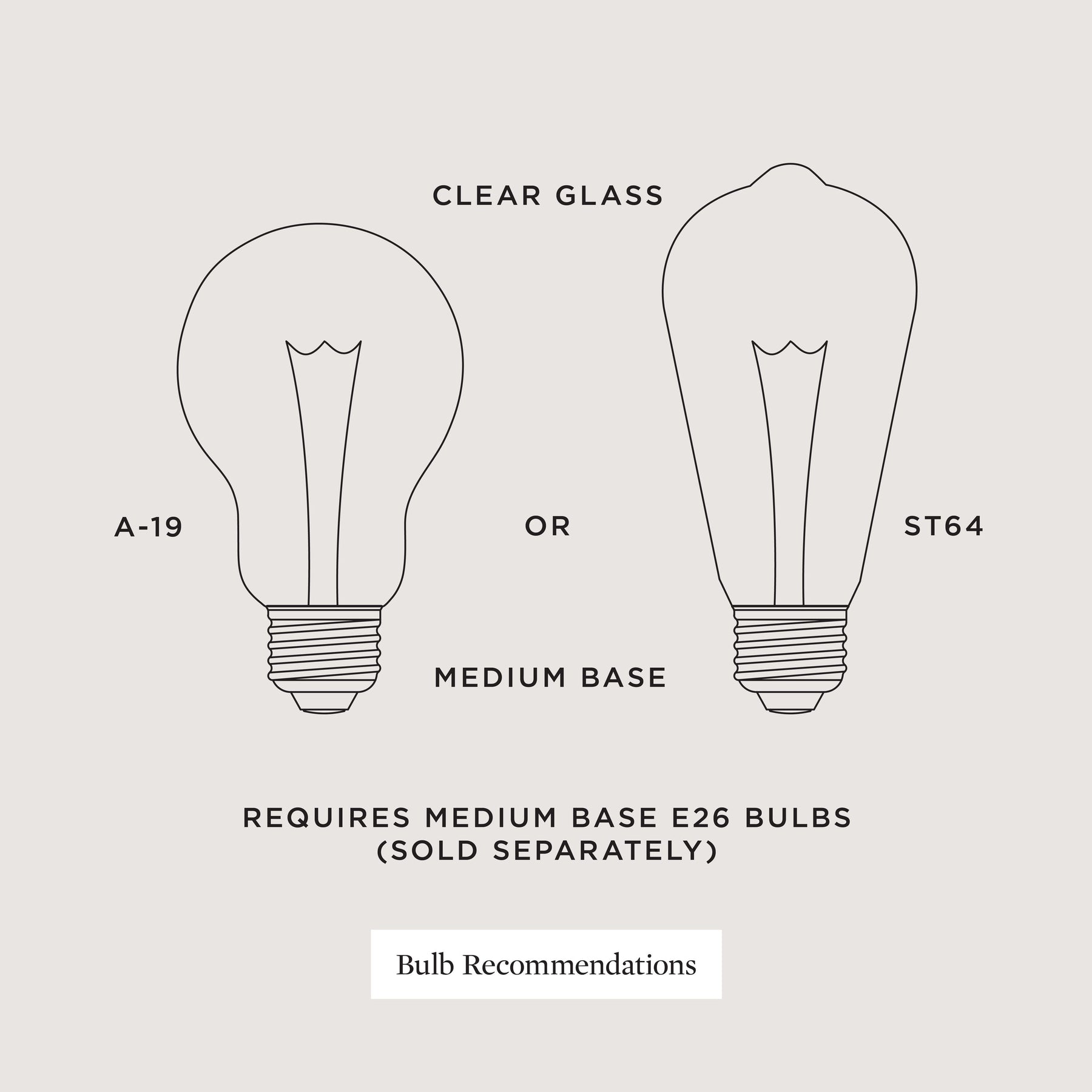 A: This fixture uses four 60-Watt maximum A19 bulbs, or LED equivalent, which are sold separately. It is also dimmable when used with compatible bulbs.