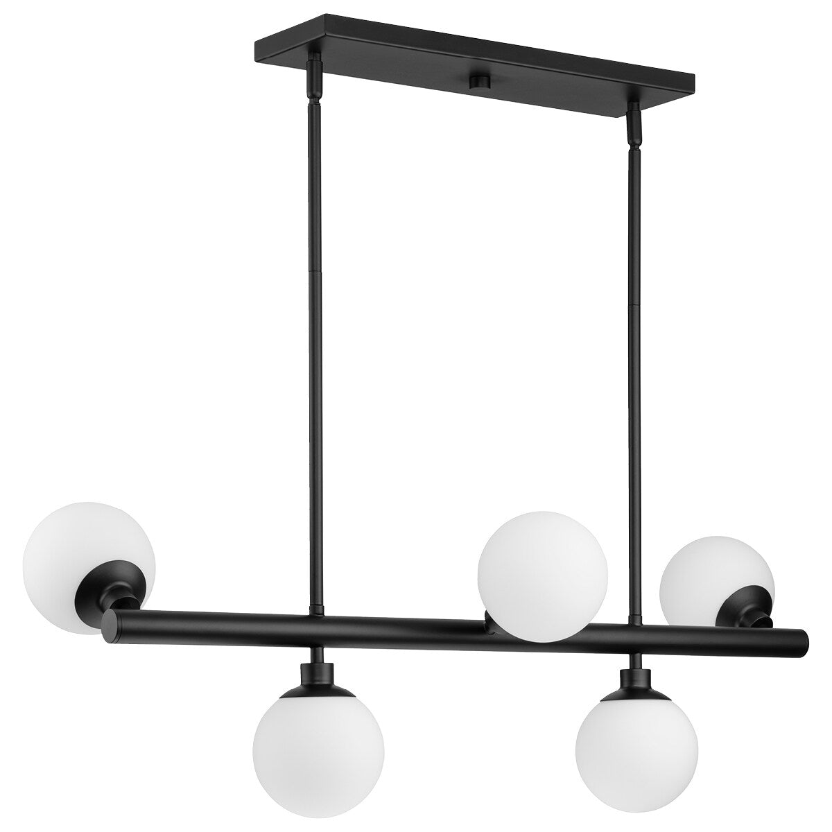 Illuminate your island or dining area with the Progress Lighting Avec 5-Light Matte Black Kitchen Island Light. This stylish fixture combines contemporary design with functional beauty, featuring a sleek matte black frame paired with exquisite white glass shades. Ideal for modern settings, it offers adjustable height for perfect positioning and versatile installation options.