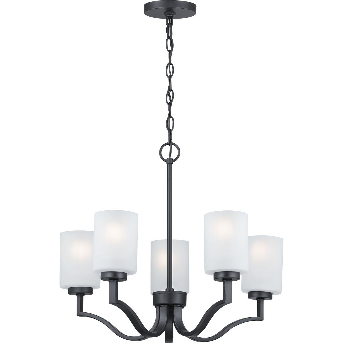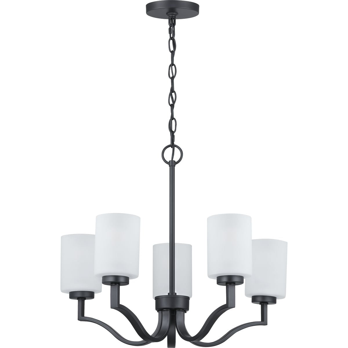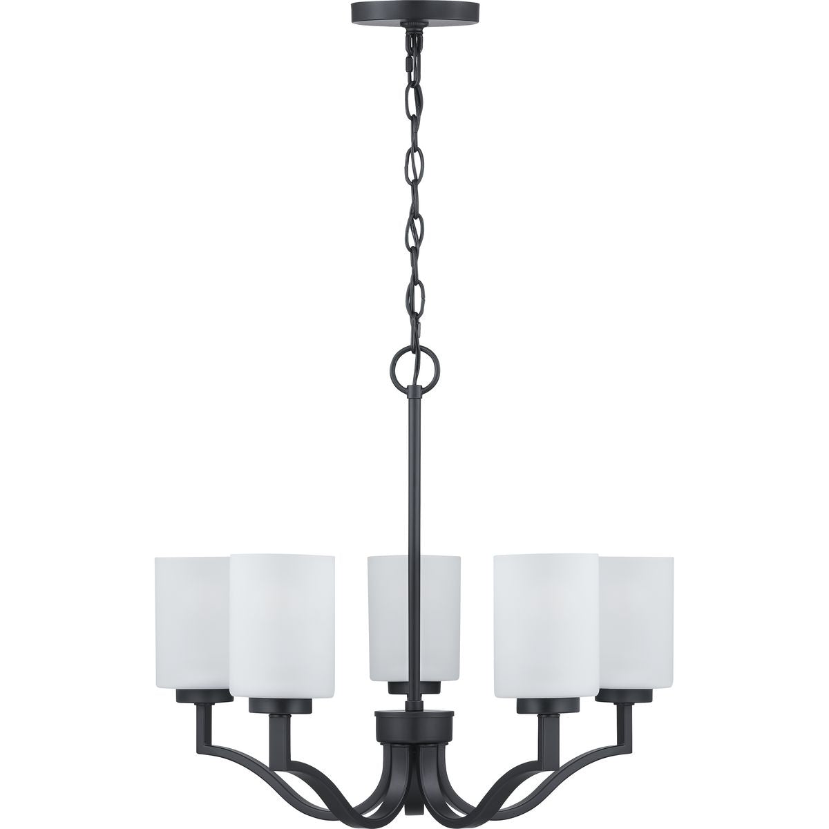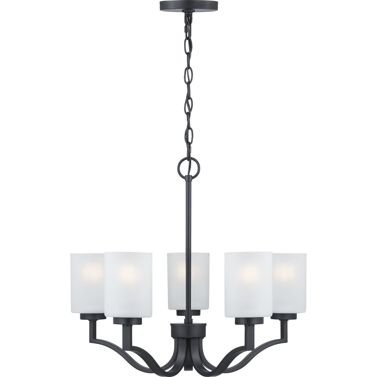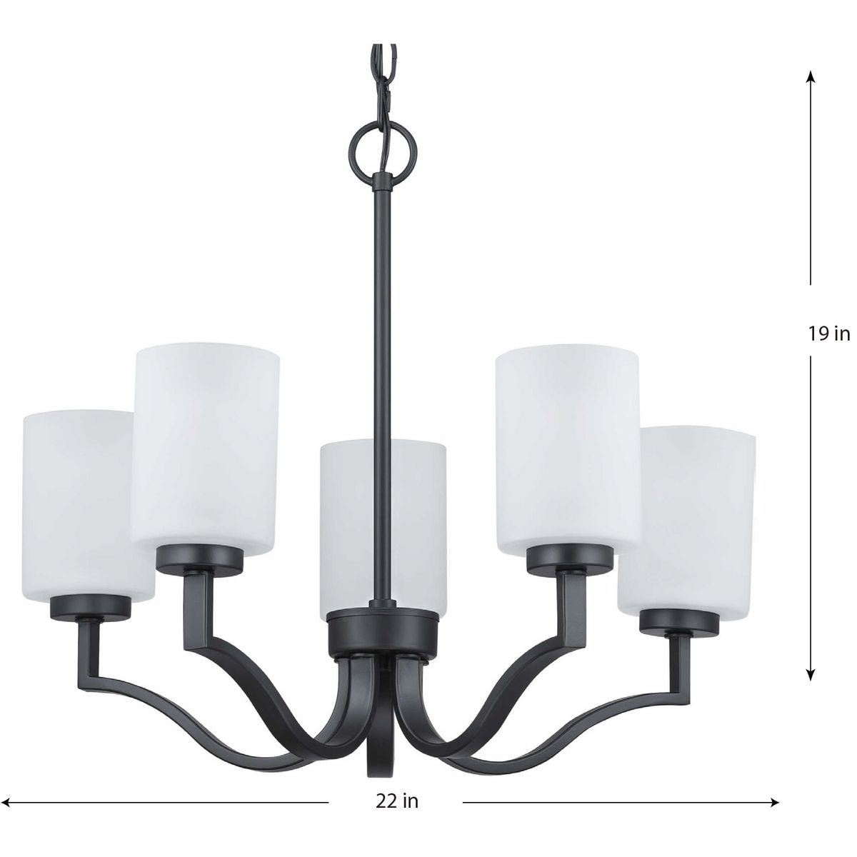 Illuminate your spaces with the Avette 5-Light Matte Black Chandelier, a striking piece that marries traditional elegance with modern finesse. Perfect for dining rooms, foyers, or great rooms, this chandelier features graceful curved arms and etched glass shades, delivering a soft glow in a crisp matte black finish.