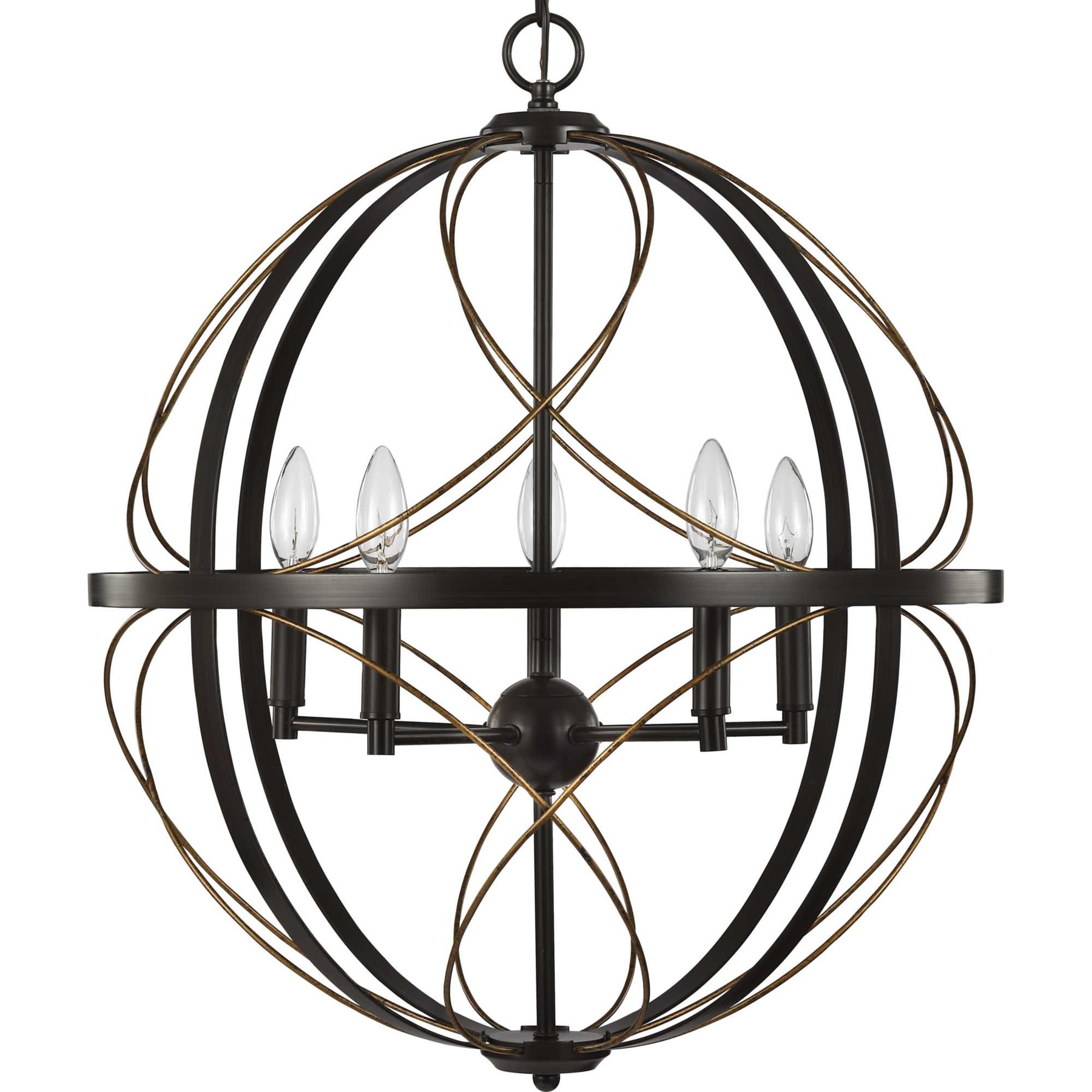 Progress Lighting Brandywine 5-Light Antique Bronze Transitional Globe Medium Hanging Pendant Light