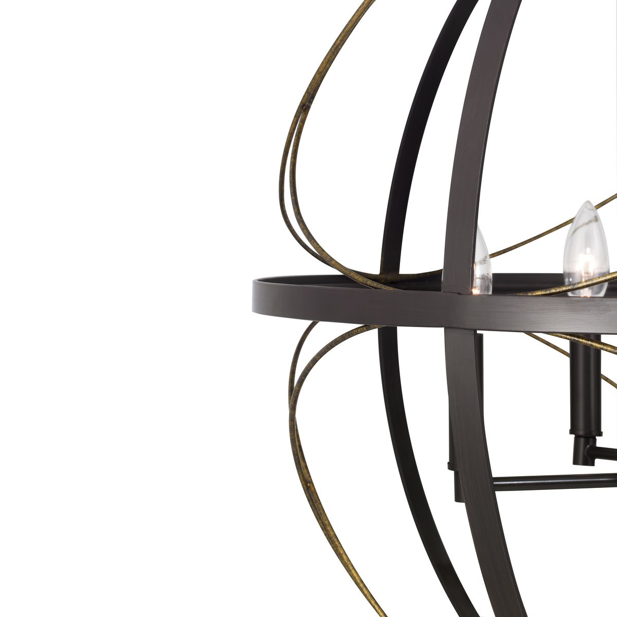 Elegant Design: Features a striking antique bronze finish with an open-frame sphere and curving forms.