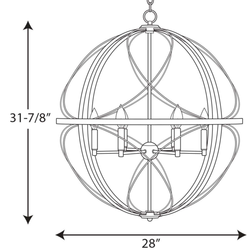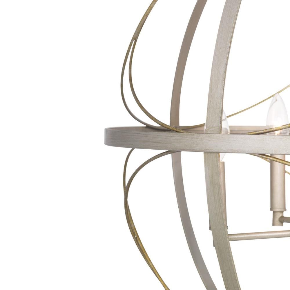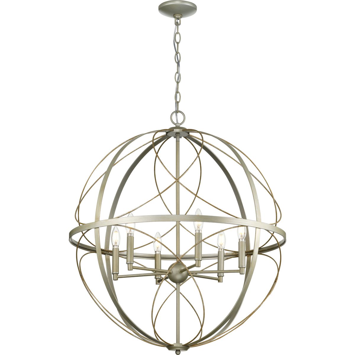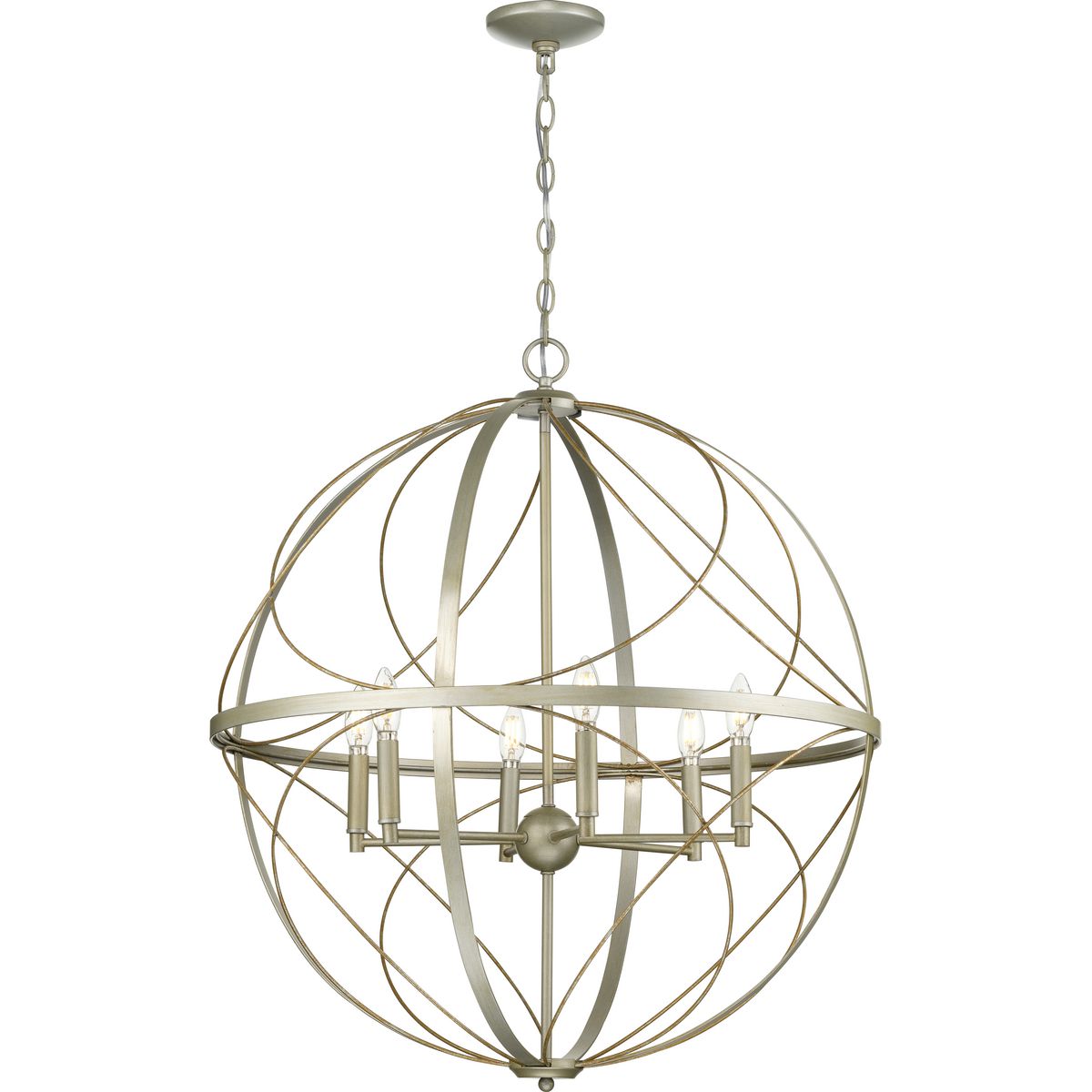 Enhance your spaces with the Brandywine 6-Light Silver Ridge Pendant Light by Progress Lighting. This elegant, transitional pendant features an open-frame sphere adorned with beautifully curved forms in a stunning silver ridge finish. Perfect for your dining room, kitchen, or foyer, it adds a sophisticated touch to both farmhouse and transitional decor styles.