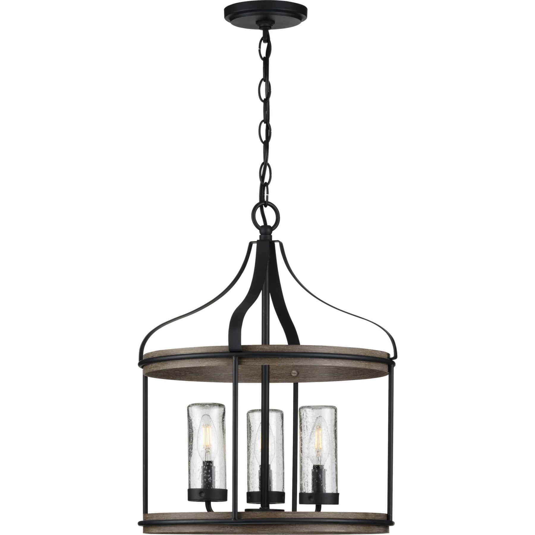 Farmhouse Design: Rustic clear seeded glass with a durable matte black finish for a timeless look.