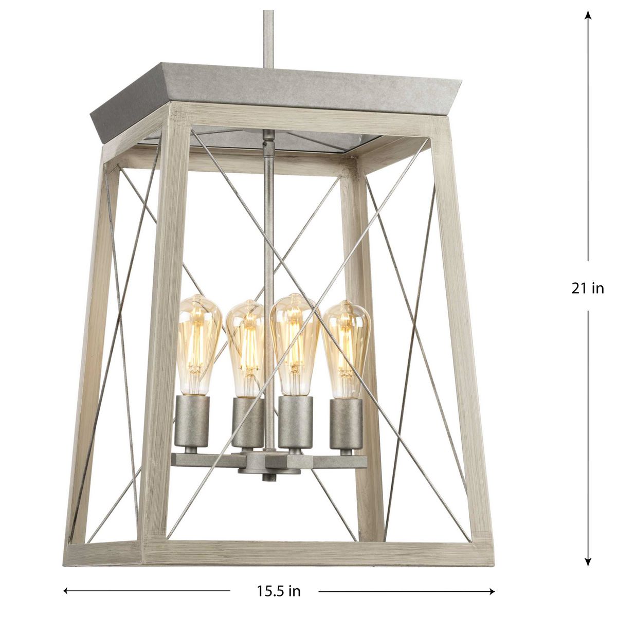 Illuminate your space with the Briarwood Farmhouse Chandelier, a charming blend of rustic allure and modern style. Designed for spaces like foyers and dining rooms, this 4-light fixture boasts a faux-paint oak frame and galvanized metal accents, perfect for showcasing vintage-style bulbs. Enhance your home with its classic X-brace design and open structure for a welcoming ambiance.
