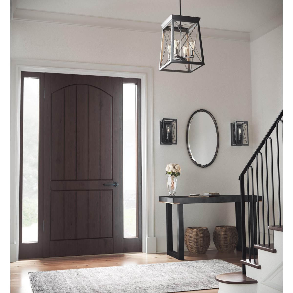 Illuminate and elevate your space with the Briarwood 4-Light Pendant Light. This stunning farmhouse-style fixture features a textured black finish and a faux-painted wood frame, perfect for adding rustic charm to any kitchen, dining room, or foyer. Its open lattice design showcases stylish bulbs while providing a comforting country glow.