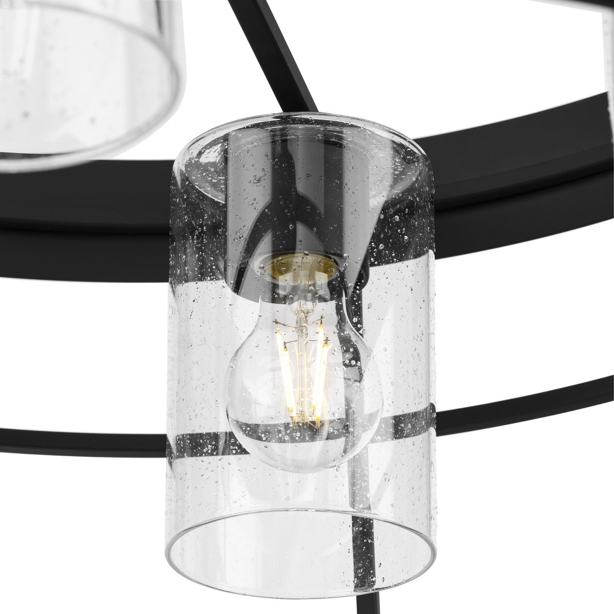 Illuminate your home with the Progress Lighting Burgess Chandelier, an elegant fusion of rustic charm and modern craftsmanship. Featuring a striking matte black finish and clear glass shades, this fixture effortlessly complements farmhouse, industrial, and modern craftsman interiors. Ideal for various settings, it provides ambient light that enhances both style and function.
