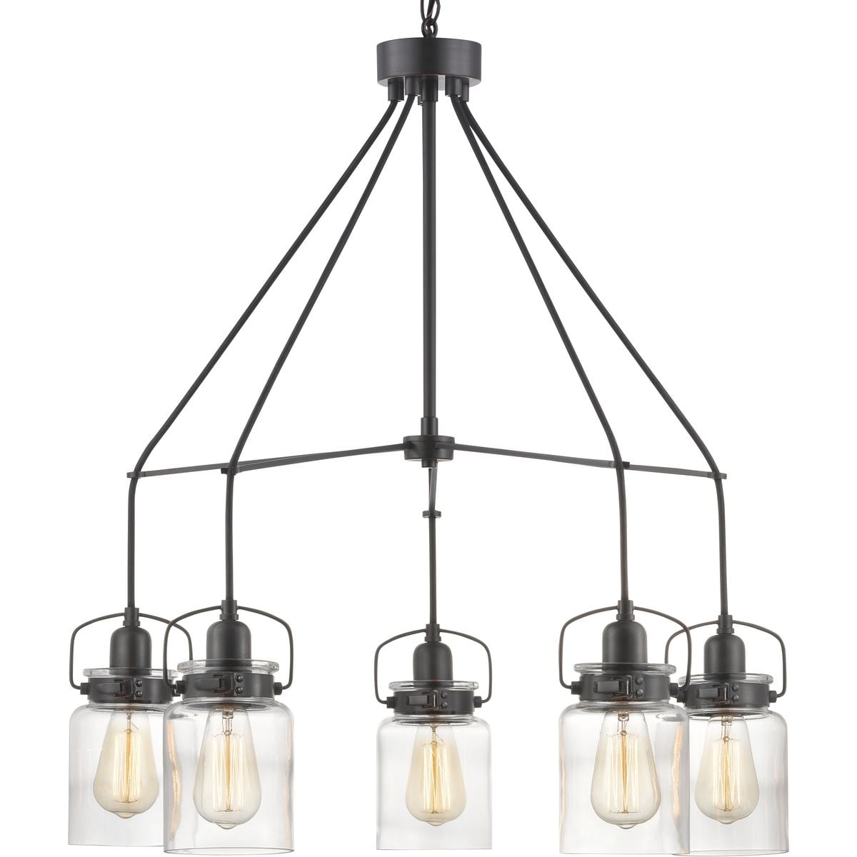 Illuminate your space with the elegant Calhoun 5-Light Chandelier, featuring an antique bronze finish and apothecary-style glass shades for a vintage-inspired look. Perfect for adding a touch of transitional design to your dining room, foyer, or living room.