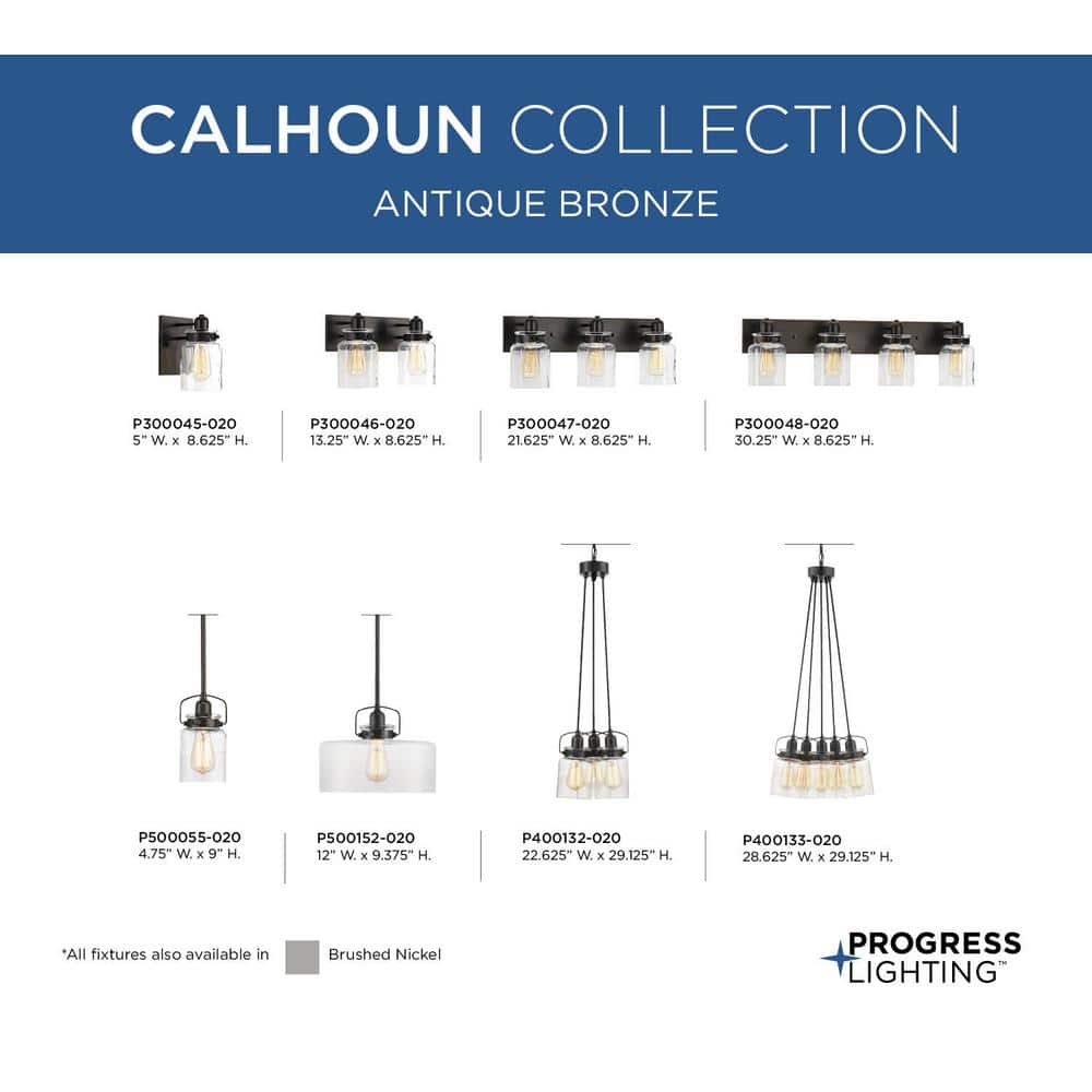 Illuminate your space with the timeless allure of the Progress Lighting Calhoun 3-Light Chandelier. Featuring an antique bronze finish and clear glass shades reminiscent of apothecary jars, this chandelier melds classic design with modern functionality, perfect for farmhouse, coastal, and industrial aesthetics.