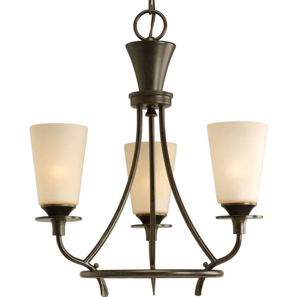 Progress Lighting Cantata 3-Light Forged Bronze Chandelier with Seeded Topaz Glass