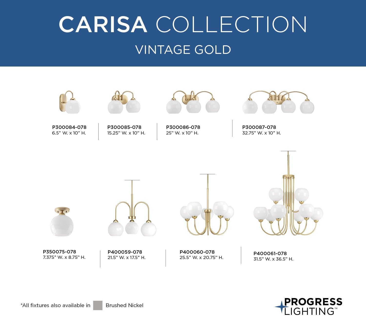 Illuminate your space with the Carisa 5-Light Chandelier by Progress Lighting, featuring a stunning brushed nickel finish and sleek etched glass shades. Inspired by mid-century design, this chandelier combines classic elegance with modern aesthetic, making it a versatile choice for dining rooms, living spaces, and more.