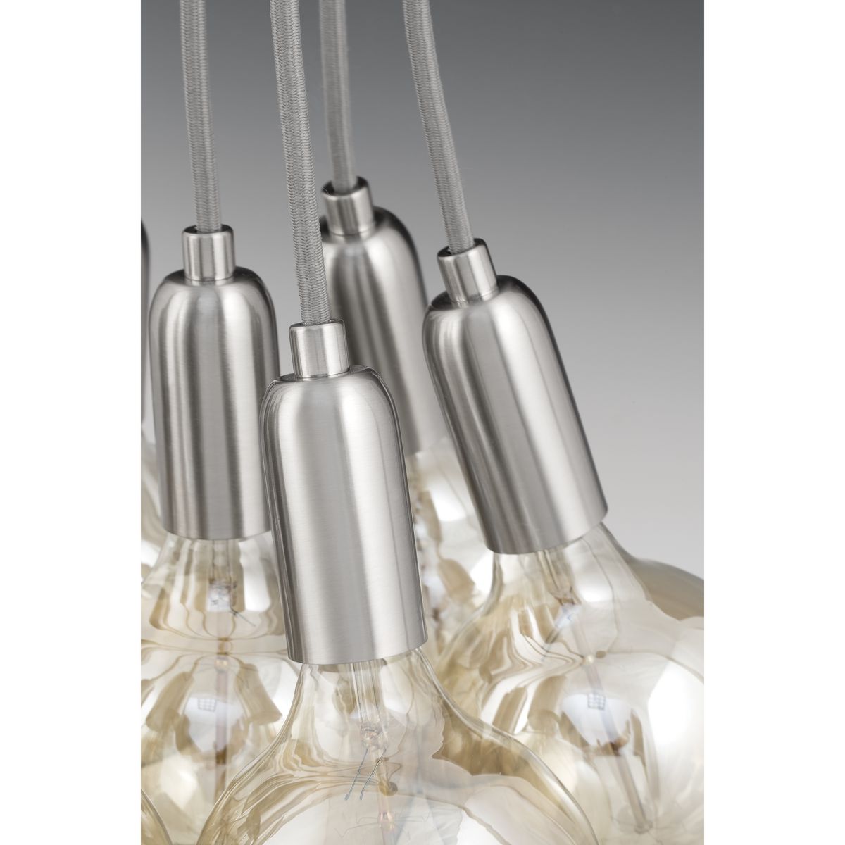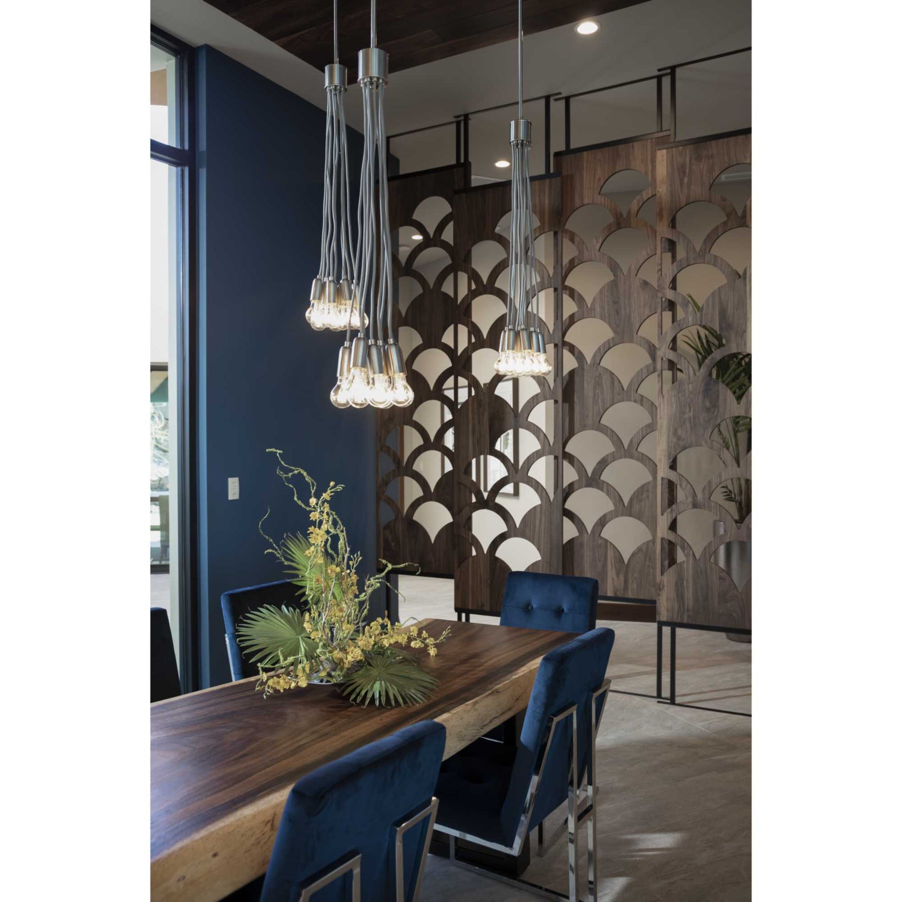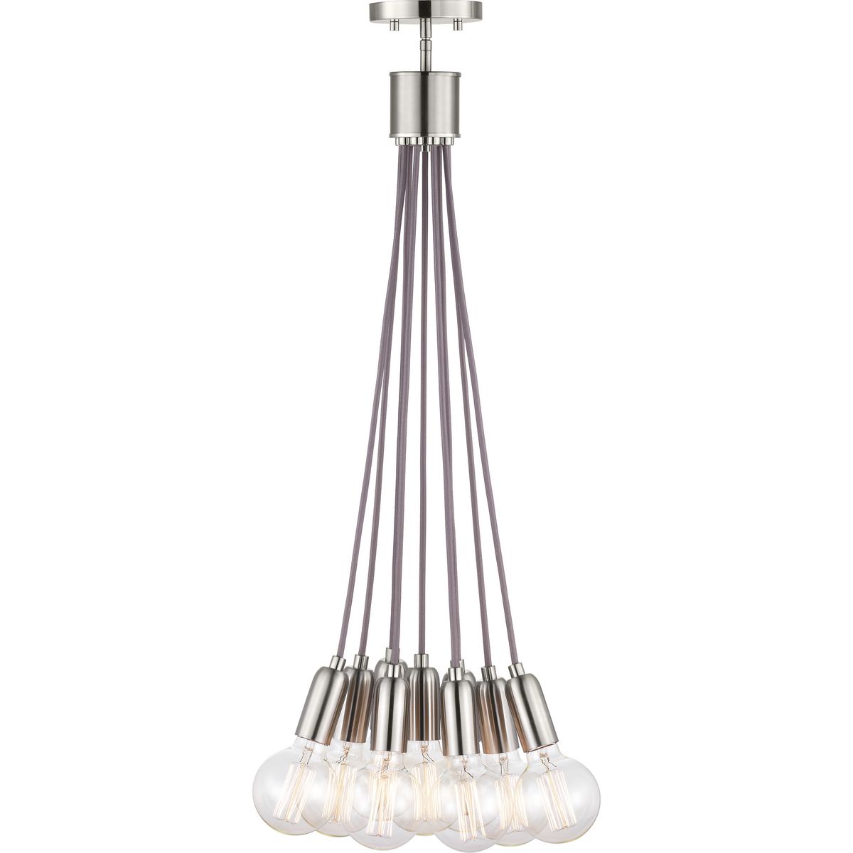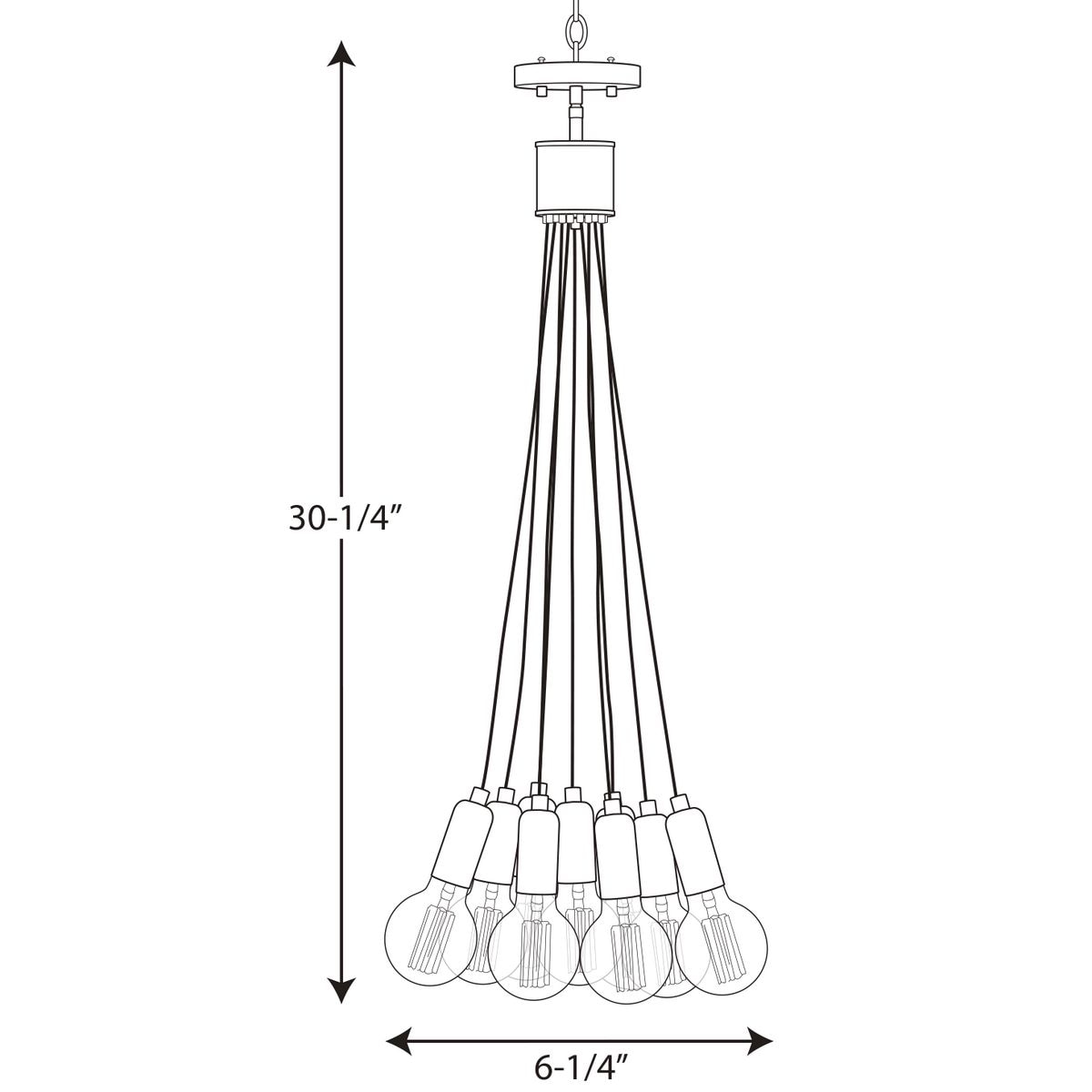 The Cirro 9-Light Pendant from Progress Lighting combines timeless mid-century style with modern flair. Its elegant brushed nickel finish and geometric silhouette make it an ideal choice for illuminating kitchens, dining areas, and entryways. Perfect for showcasing globe or vintage bulbs, this fixture promises to captivate and elevate any space.