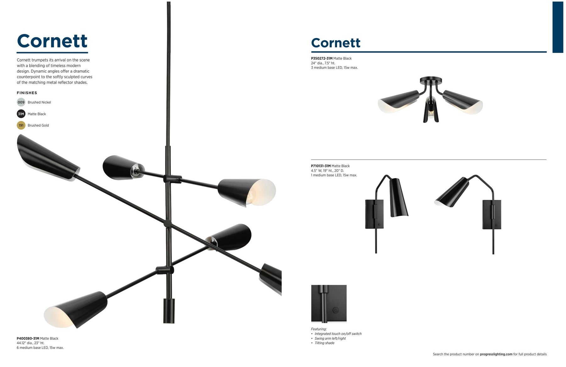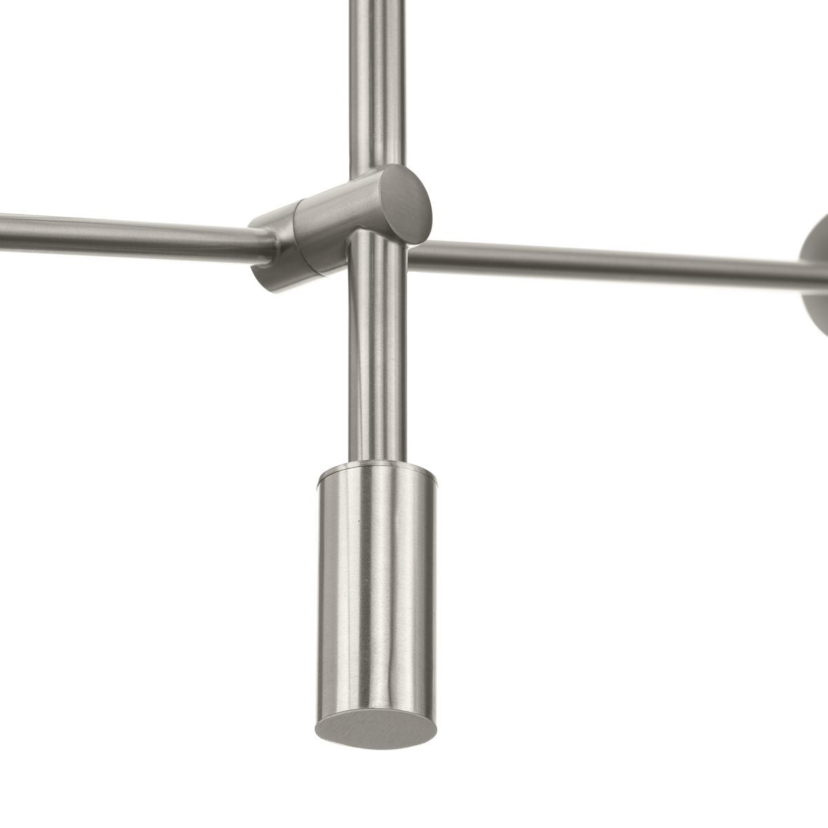 The Cornett 6-Light Chandelier by Progress Lighting is a striking addition to any modern space, featuring dynamic angles and a polished brushed nickel finish. Its unique design includes adjustable arms, allowing flexibility in light direction, perfect for illuminating dining rooms and great rooms. Designed with functionality and style in mind, this chandelier is both dimmable and compatible with various mounting types, including sloped ceilings.