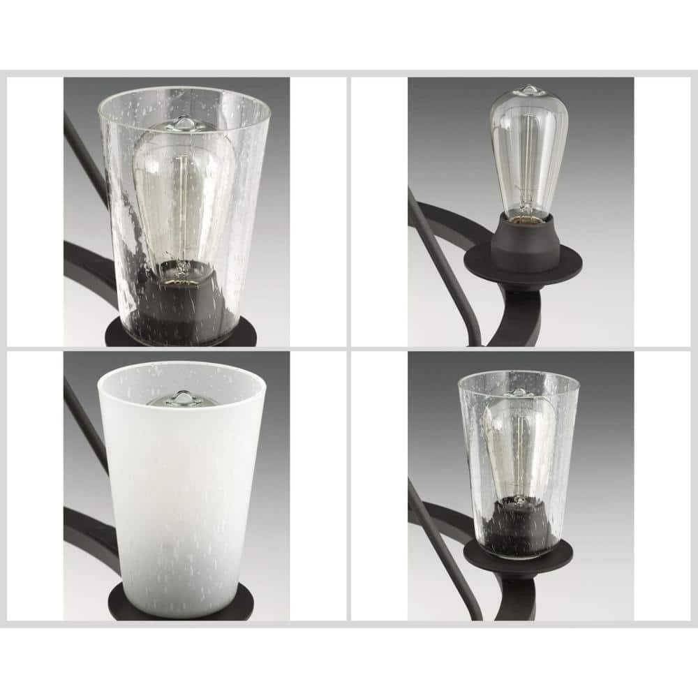 • Customizable Design: Includes clear and frosted seeded glass shade options to tailor to your aesthetic preference.