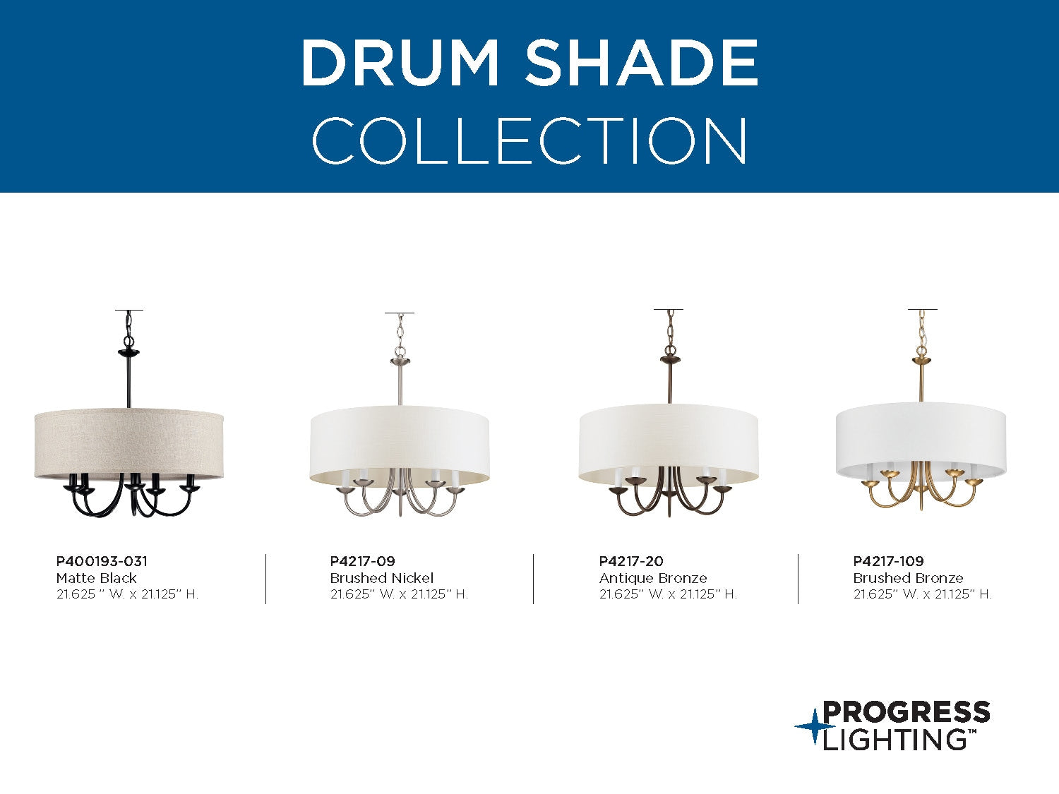 Transform your living space today with the timeless elegance of the Progress Lighting Drum Shade Chandelier.