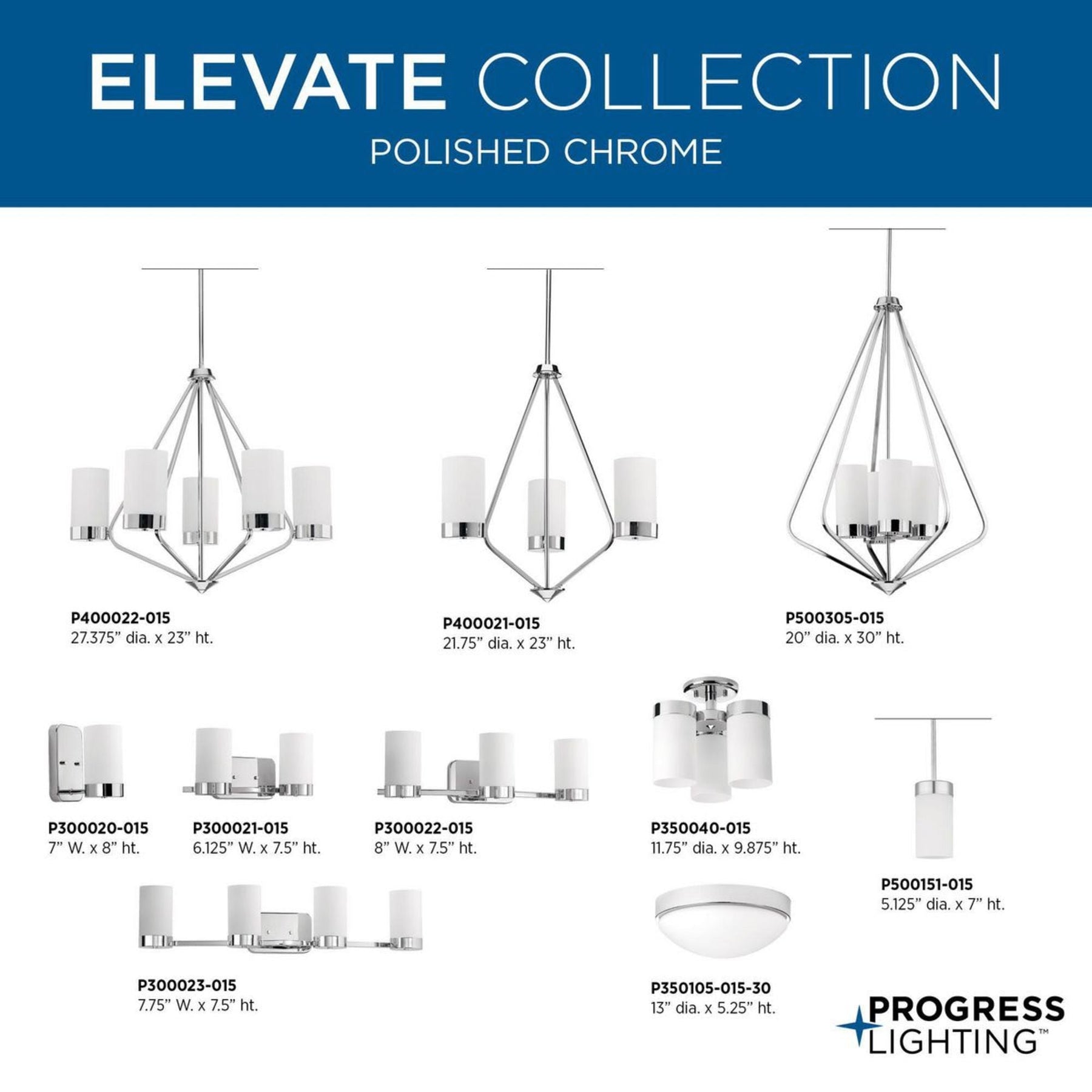 The Progress Lighting Elevate 5-Light Chandelier is a stunning piece that perfectly balances modern sophistication with mid-century charm. Wrapped in a crisp polished chrome finish, its distinctive trapezoidal frame and etched white glass shades cast a dazzling glow, making it an ideal centerpiece for dining rooms or great rooms.